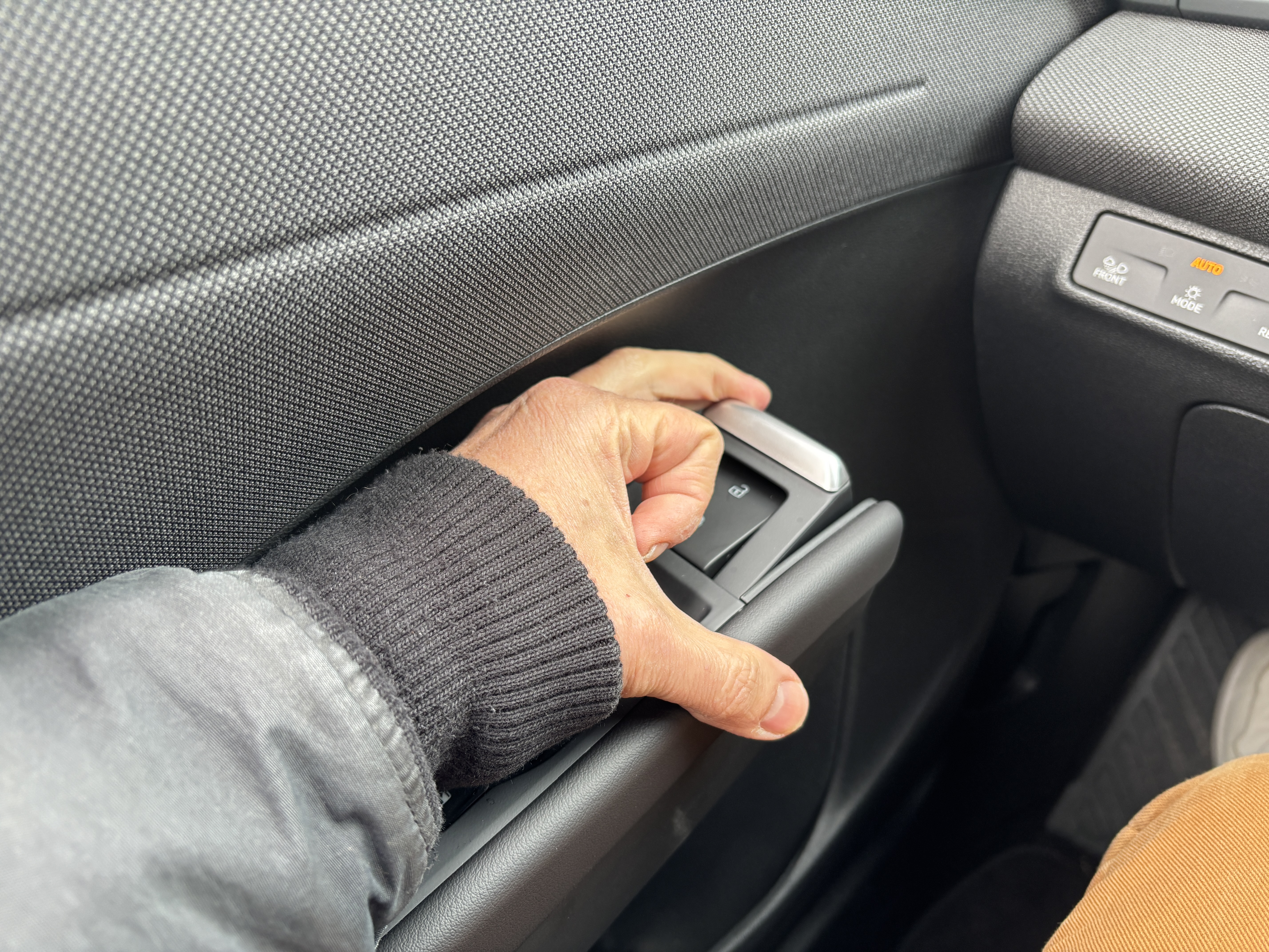 C’est à ce moment, en sortant du véhicule, que l’on découvre l’une des principales originalités de ce T-Roc, à savoir son système d’ouverture de porte. À l’intérieur, fini la classique poignée, place à une gâchette que l’on soulève. Un temps d’adaptation est nécessaire, mais cela se fait plutôt naturellement ensuite.