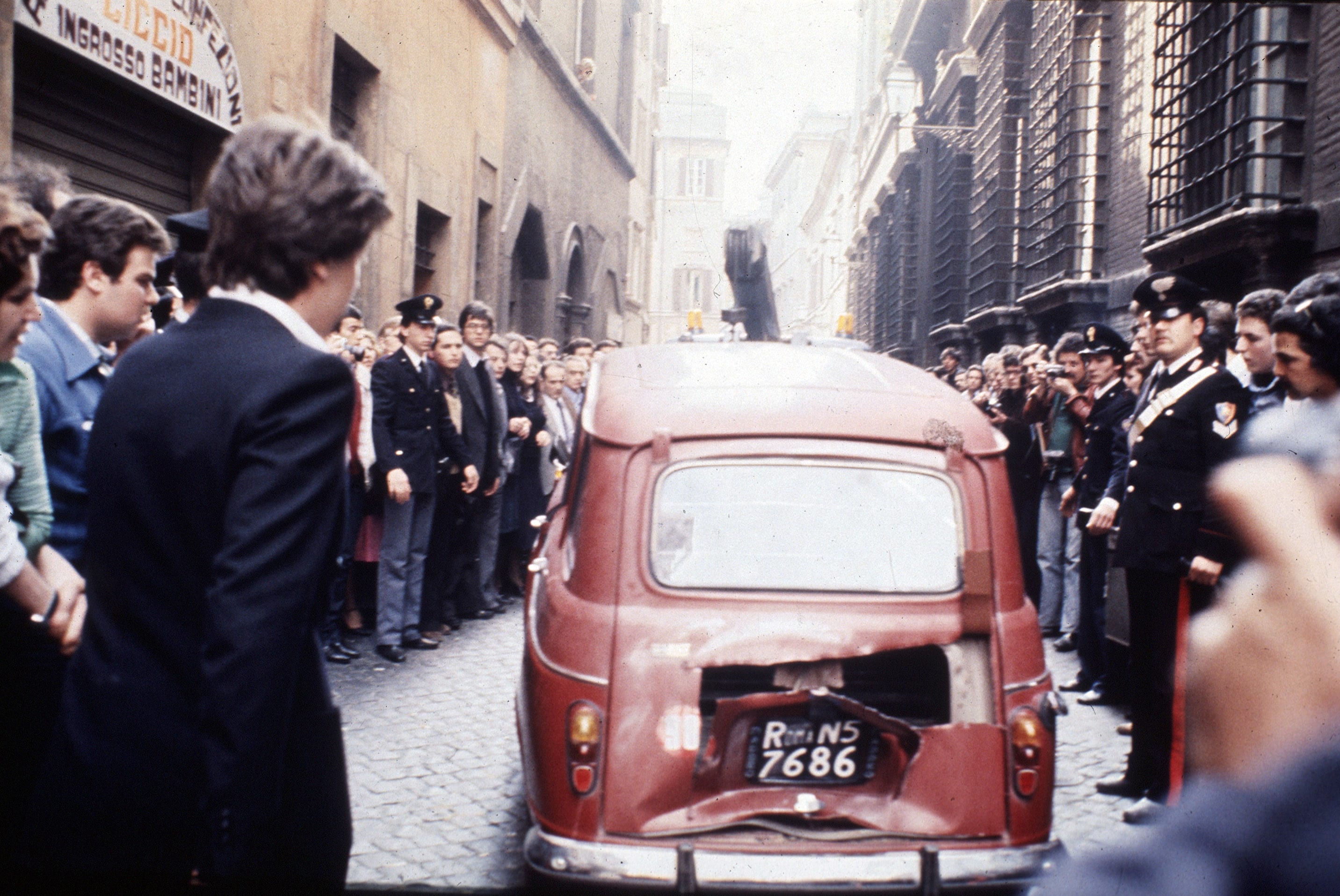 9 Mai 1978, en fin d'après-midi. Un modèle de voiture assez inhabituel dans les rues de Rome, une Renault 4 de couleur rouge immatriculée « Roma N5 7686 », est remorqué par la fourrière sous la surveillance de policiers et de carabiniers. Une foule de badauds, encore médusée, assiste à la scène.