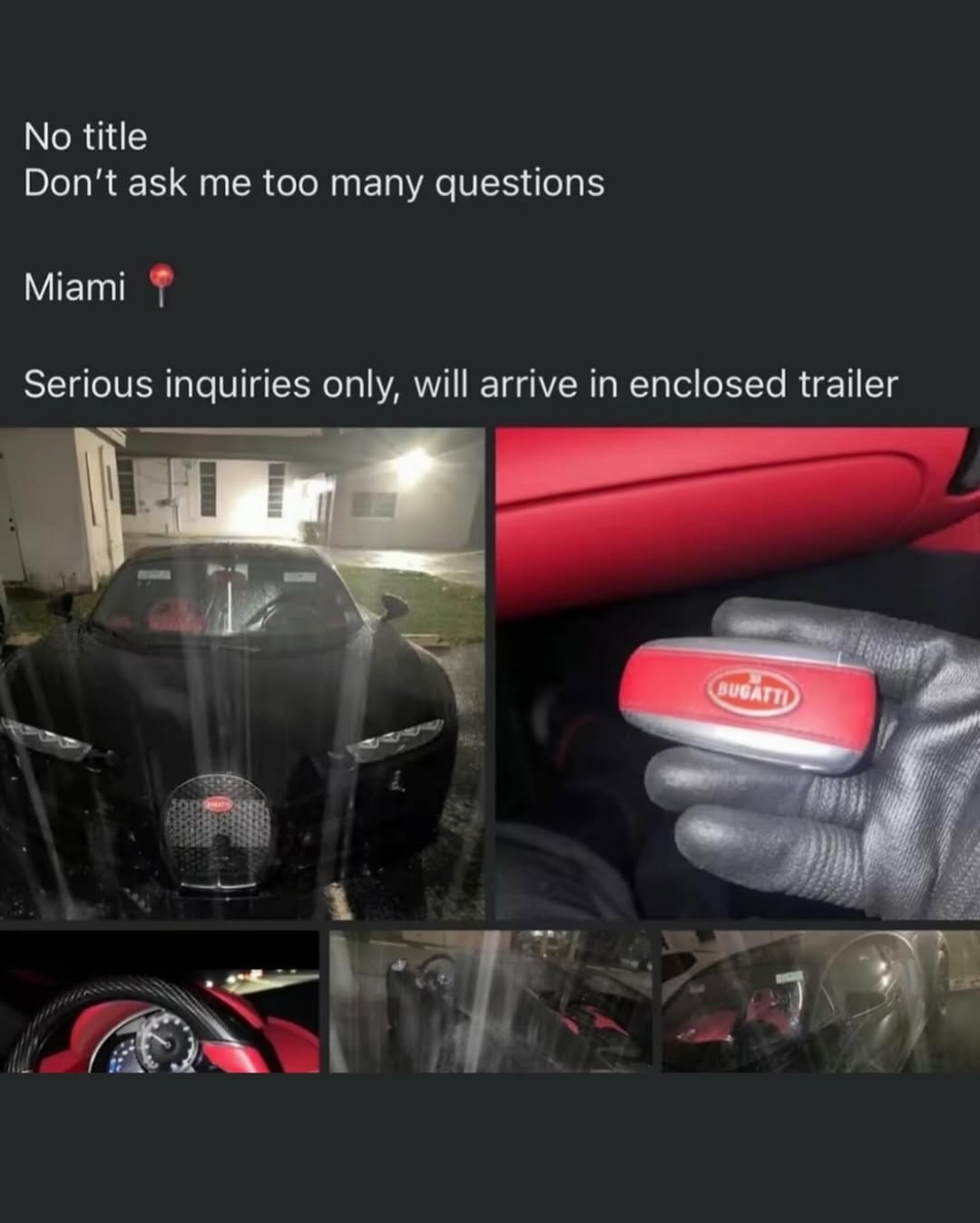Dans le genre, des délinquants souhaitent échanger une Pagani Huayra contre 60 000 dollars (50 900 euros), un SUV de luxe Rolls-Royce Cullinan contre 10 000 dollars (8 484 euros) ou encore une Ferrari F8 Spyder contre 7500 dollars seulement (6 362 euros). Les délais de stockage sans suivi de la police, l’absence de mouchard satellite ou les paiements en cryptomonnaies sont régulièrement mis en avant tout comme une expression très spéciale.