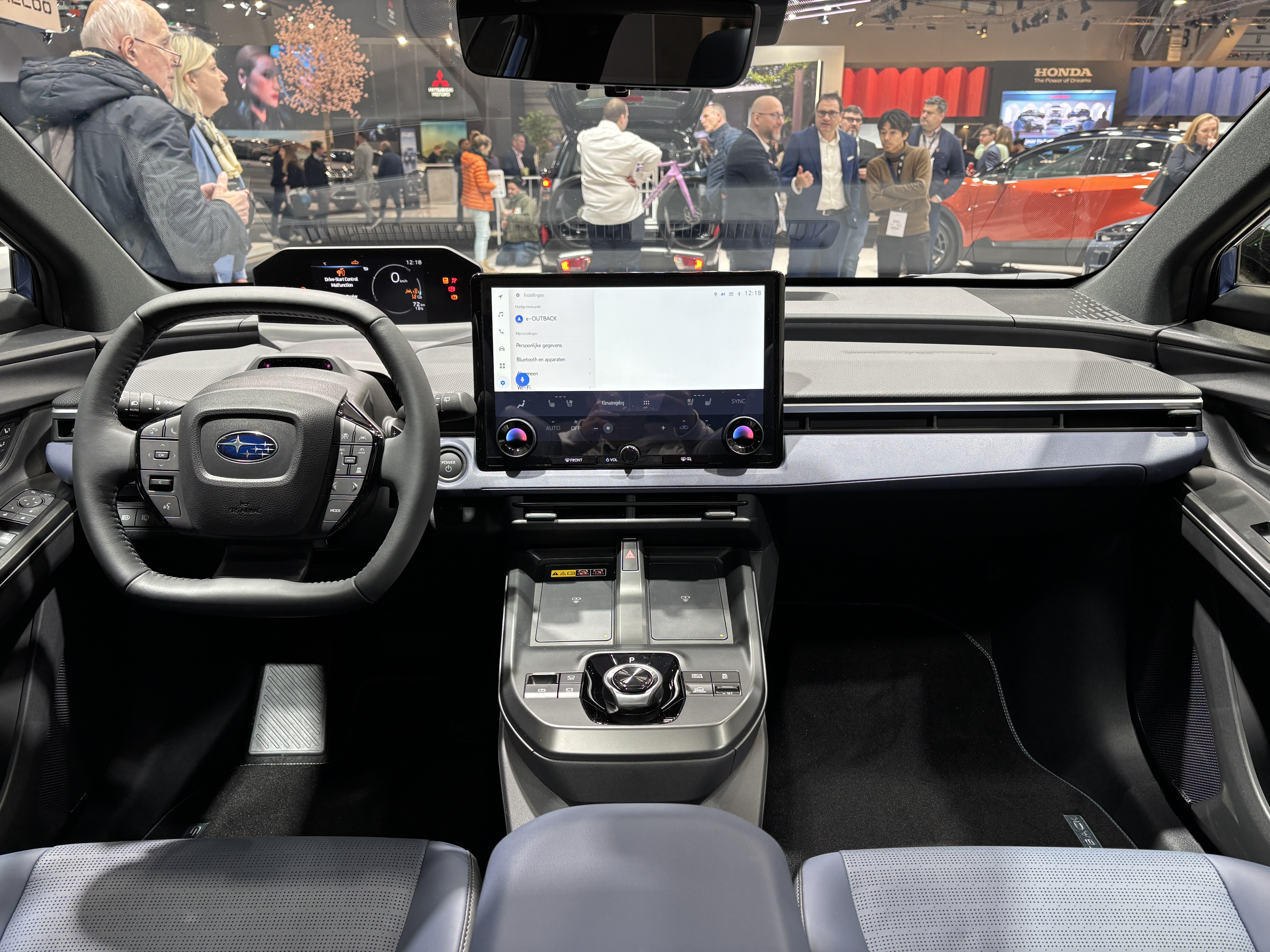 À l'avant, la planche de bord est très proche que la dernière génération de Solterra, l'autre modèle électrique de Subaru avec une instrumentation numérique positionnée relativement haut, mais surtout un écran multimédia de 14 pouces, qui est le plus grand jamais proposé par le constructeur japonais. Bonne nouvelle, les rangements sont nombreux à bord.