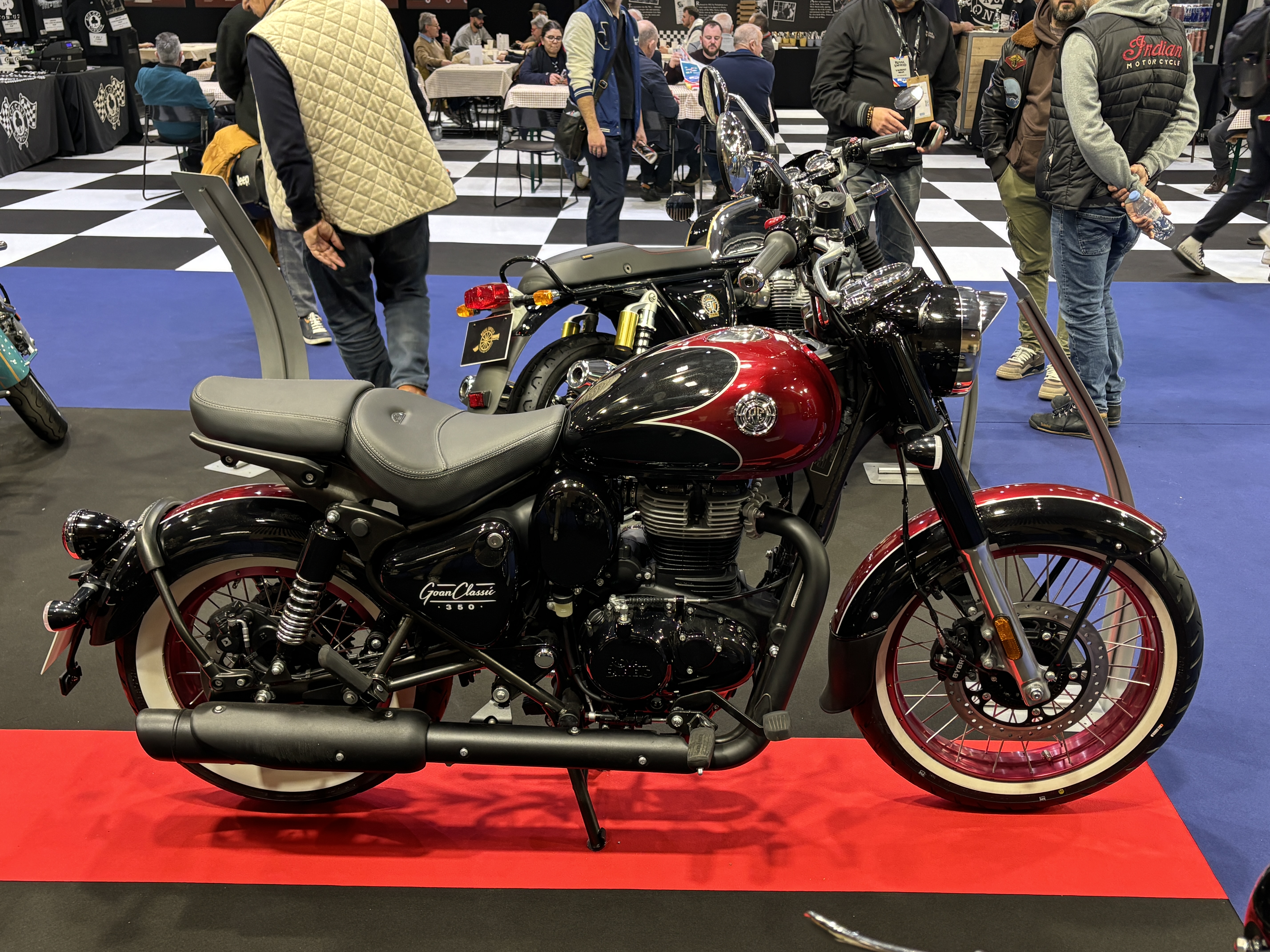 Mais les amateurs de motos modernes trouveront aussi leur bonheur puisque la SIMA, importateur de Royal Enfield en France en profite pour exposer certaines nouveautés, à l'image de la Bullet 650, plus ancienne moto au monde en production continu qui adopte aujourd'hui un bicylindre 650 cc.