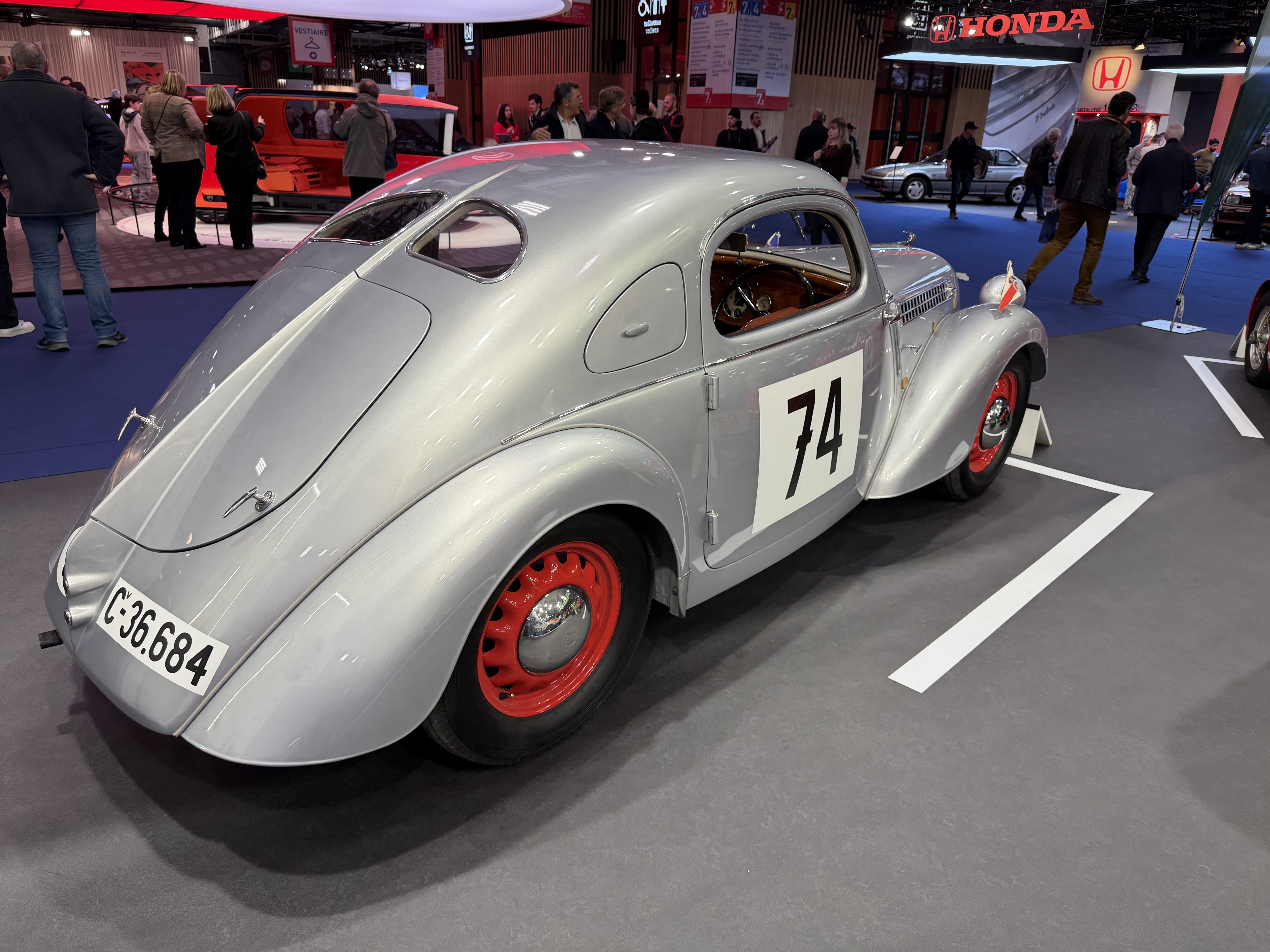 Mais cette Fabia n’est pas seule. Elle est accompagnée de nombreuses autres autos qu’on peut qualifier de « plus excitantes ». Passons sur la petite mobylette de 1901 exposée sur le stand, datant des tout débuts du constructeur tchèque, et allons jusqu’à la très jolie Skoda Popular de 1937, déjà engagée en rallye à l’époque. Une toute petite auto absolument superbe, dont le design cadrait parfaitement avec les tendances de la fin des années 30.