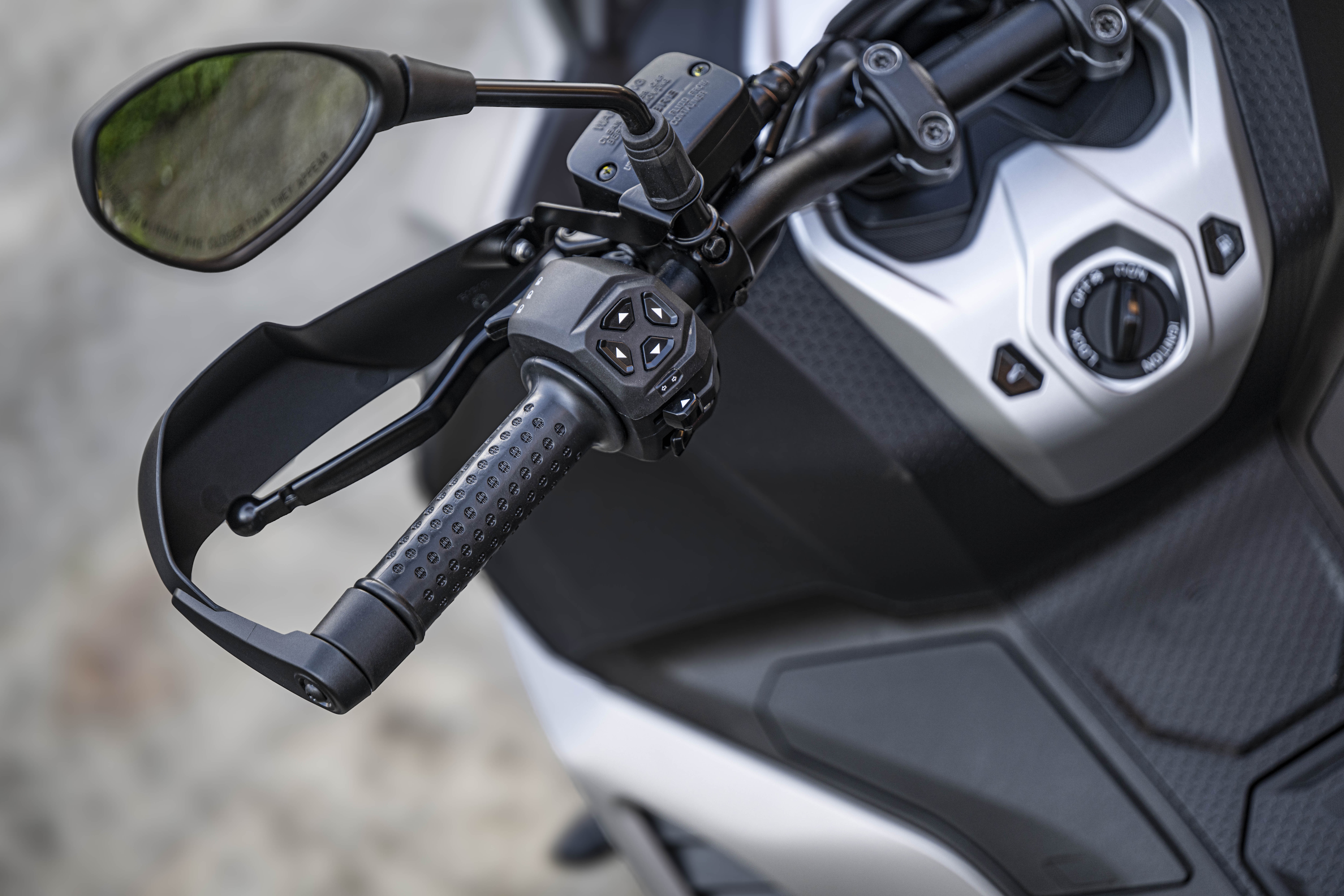 Comprenez par-là que celui-ci est limité. L’écran TFT de 5 pouces propose deux affichages et regroupe tachymètre, compte-tour, horloge, température extérieure. Il permet de visualiser des informations optionnelles par défilement au commodo gauche dont les poussoirs sont rétroéclairés, comme du côté droit. Le système permet aussi de paramétrer un mode off-road annulant ATC et ABS arrière en l’associant à la pression d’un seul bouton au commodo droit. Pas de profil de pilotage, l’électronique à bord est donc réduite. Grâce au système Aprilia MIA en option, elle se connecte à votre smartphone pour gérer vos appels, votre musique et votre navigation de manière intuitive et intelligente. Dernier point, le scoot’ dispose d’une mise sous tension sans clef.