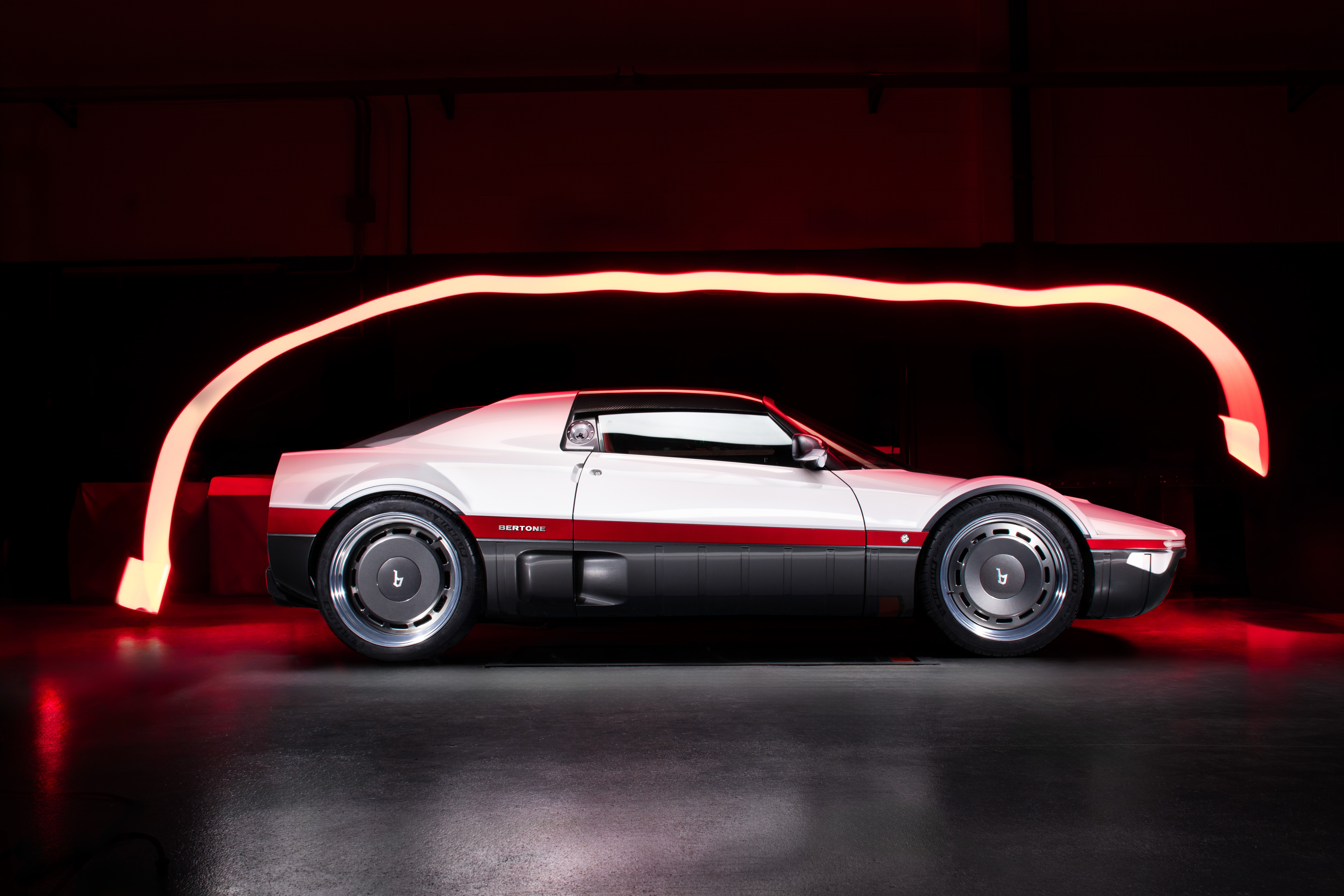 Non, cette réinterprétation moderne du concept Bertone Runabout des années 1960 n’était pas vouée à faire salon à l’Ultimate Car Garage en janvier dernier, en marge de Rétromobile ! Ce coupé deux places à moteur V6 central arrière de 475 ch sera bel et bien produit, à 25 exemplaires, dans les ateliers de la célèbre maison italienne, à Turin.