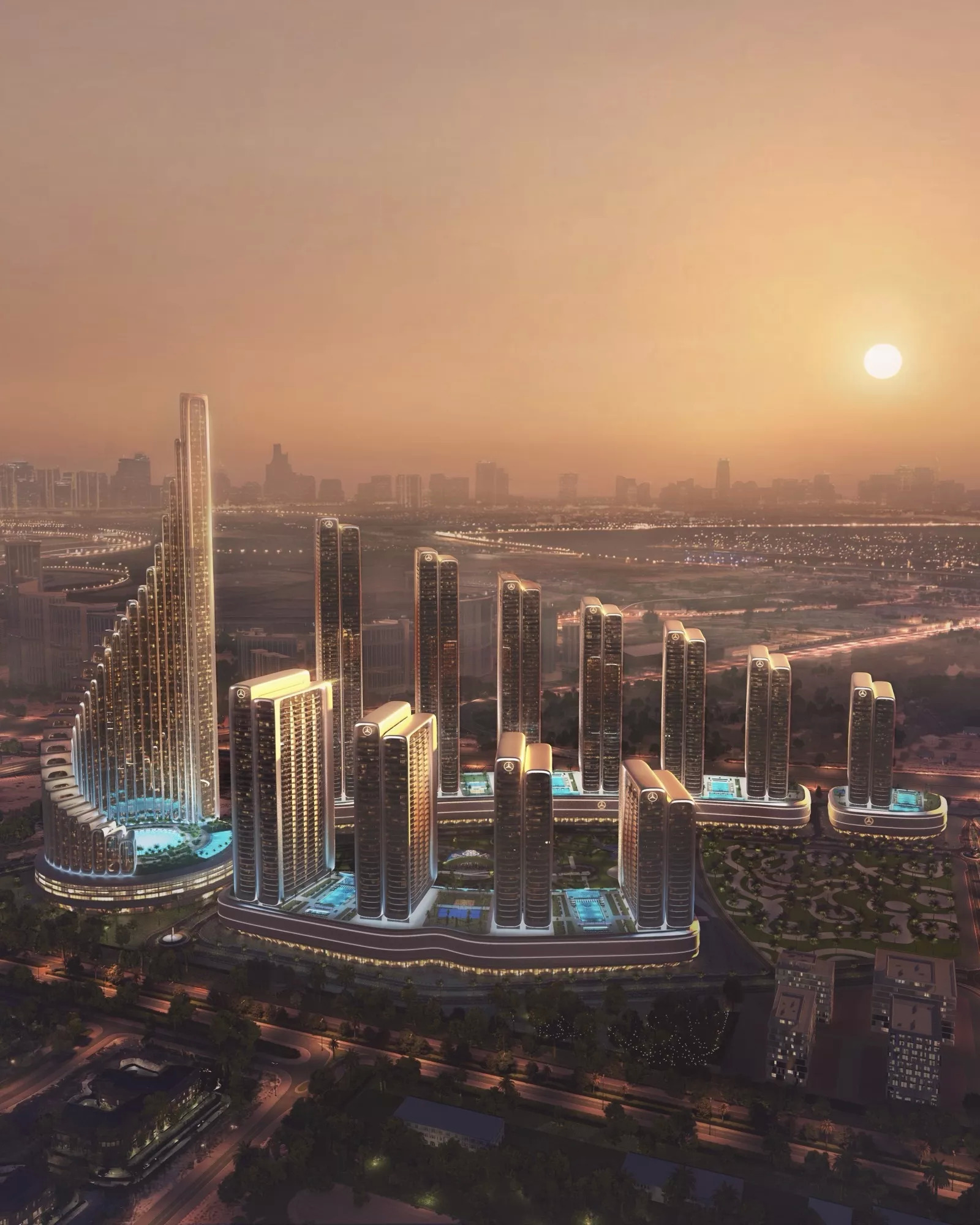 D’après la plaquette, le programme prévoit la construction de 12 immeubles portant les noms de 12 concepts présentés par le passé par la firme germanique. Sous le contrôle du promoteur de luxe Binghatti, les ensembles cumuleront plus de 13 000 logements avec des services axés sur la connectivité, le bien-être et les loisirs. Piscines à débordement, spas, jardins paysagers, aires de jeux pour les enfants et sentiers de jogging ou vélo seront de la partie. Enfin, des bureaux, des services hôteliers et de conciergerie ainsi que des bornes de recharge compléteront le tout.