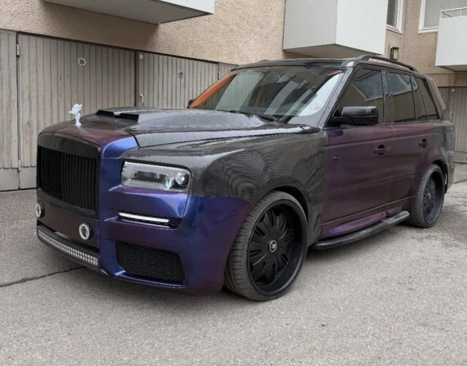 Un Range Rover Sport transformé s’approprie sans complexe les codes d’un Rolls-Royce Cullinan. Calandre monumentale, carbone omniprésent et habitacle orange vif composent un ensemble aussi audacieux que déroutant.