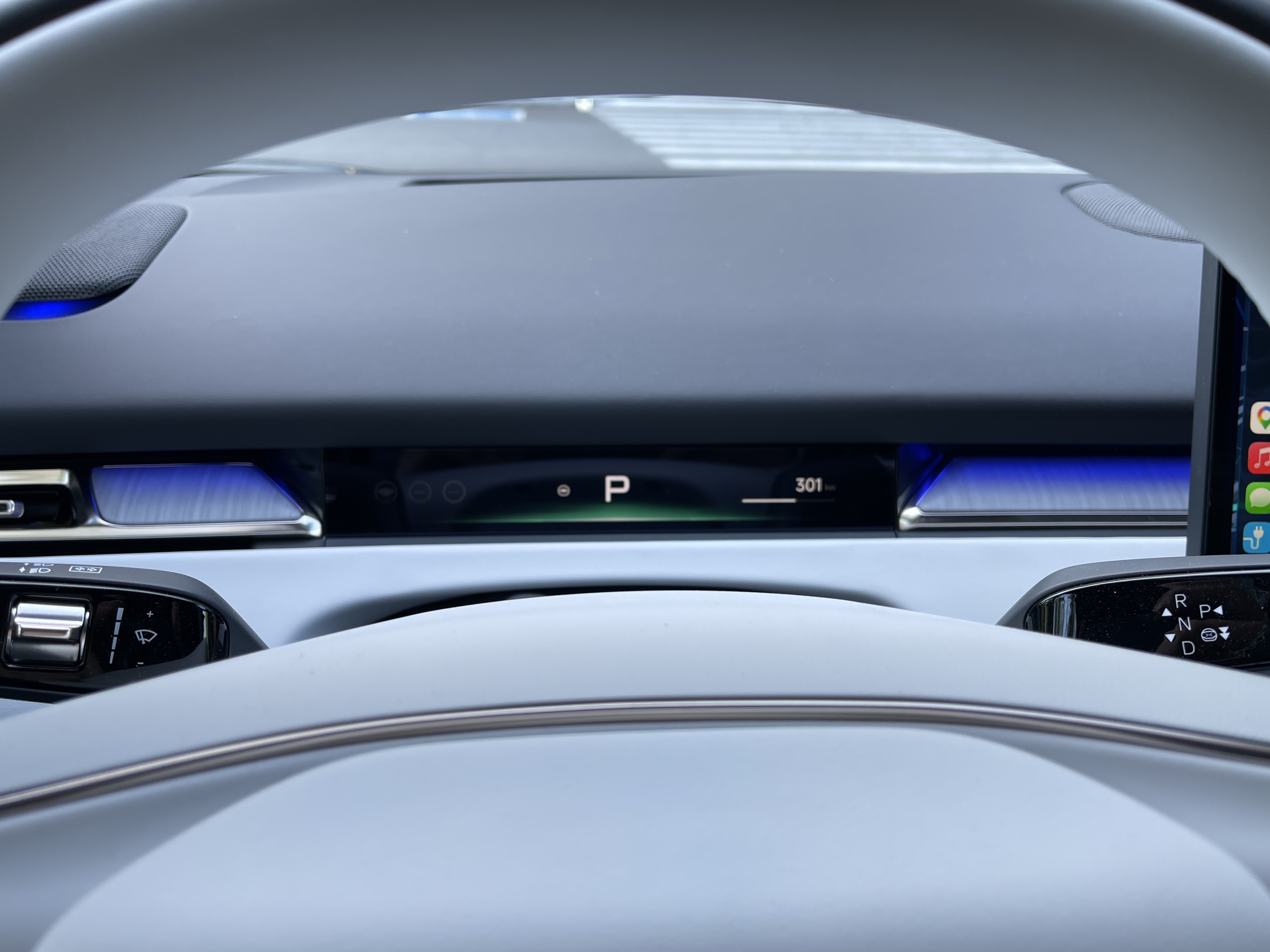 Vu le confort des sièges, on pourrait aussi le faire à l’avant, mais on est là pour tester la voiture. Les réglages, ici aussi électriques, se complètent une fois encore d’un chauffage et d’une ventilation, mais on ne peut ajuster la longueur. Lors du briefing pré-conduite, nous avons eu droit à 10 minutes d’explications sur le pourquoi du comment de l’écran central. J’aurais dû me méfier : cela signifiait en réalité que son ergonomie s’avère… compliquée. Cela vaut aussi pour les commandes au volant, beaucoup plus logiques que le cerveau de votre serviteur.