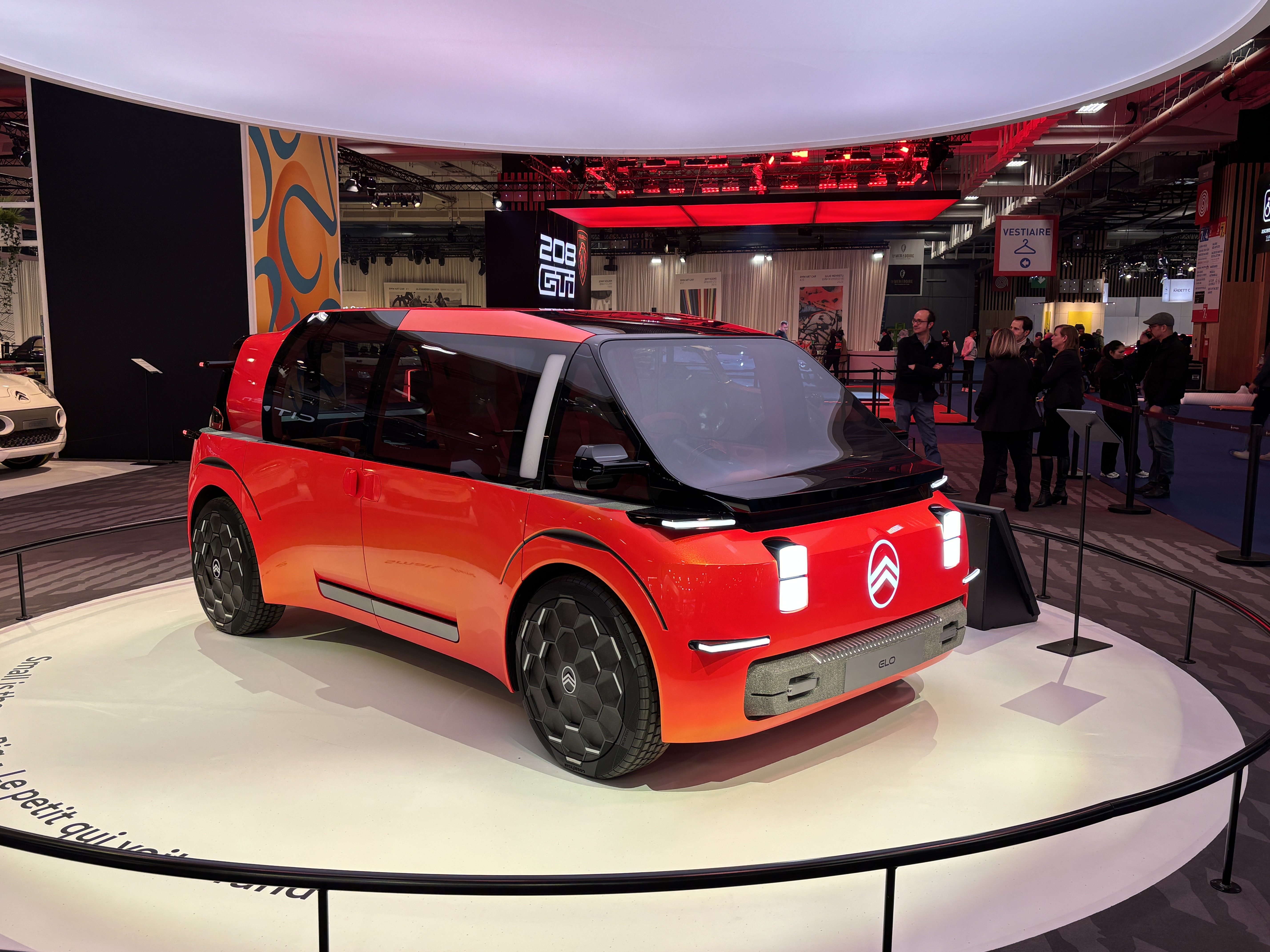 Le concept ELO au centre du stand fusionne plus de 100 ans d’innovations de la marque. Ce concept électrique de 4,10 m, est conçu pour accueillir jusqu’à six personnes. Il transforme le véhicule en un espace de vie adapté au télétravail comme aux loisirs. Il intègre par exemple des éléments tels que des matelas gonflables, des prises V2L et ou des sièges extractibles. L'innovation majeure réside dans sa conduite centrale, son pare-brise à 180° qui optimise la visibilité et l'interaction à bord ou encore ses portes antagonistes sans montant central.