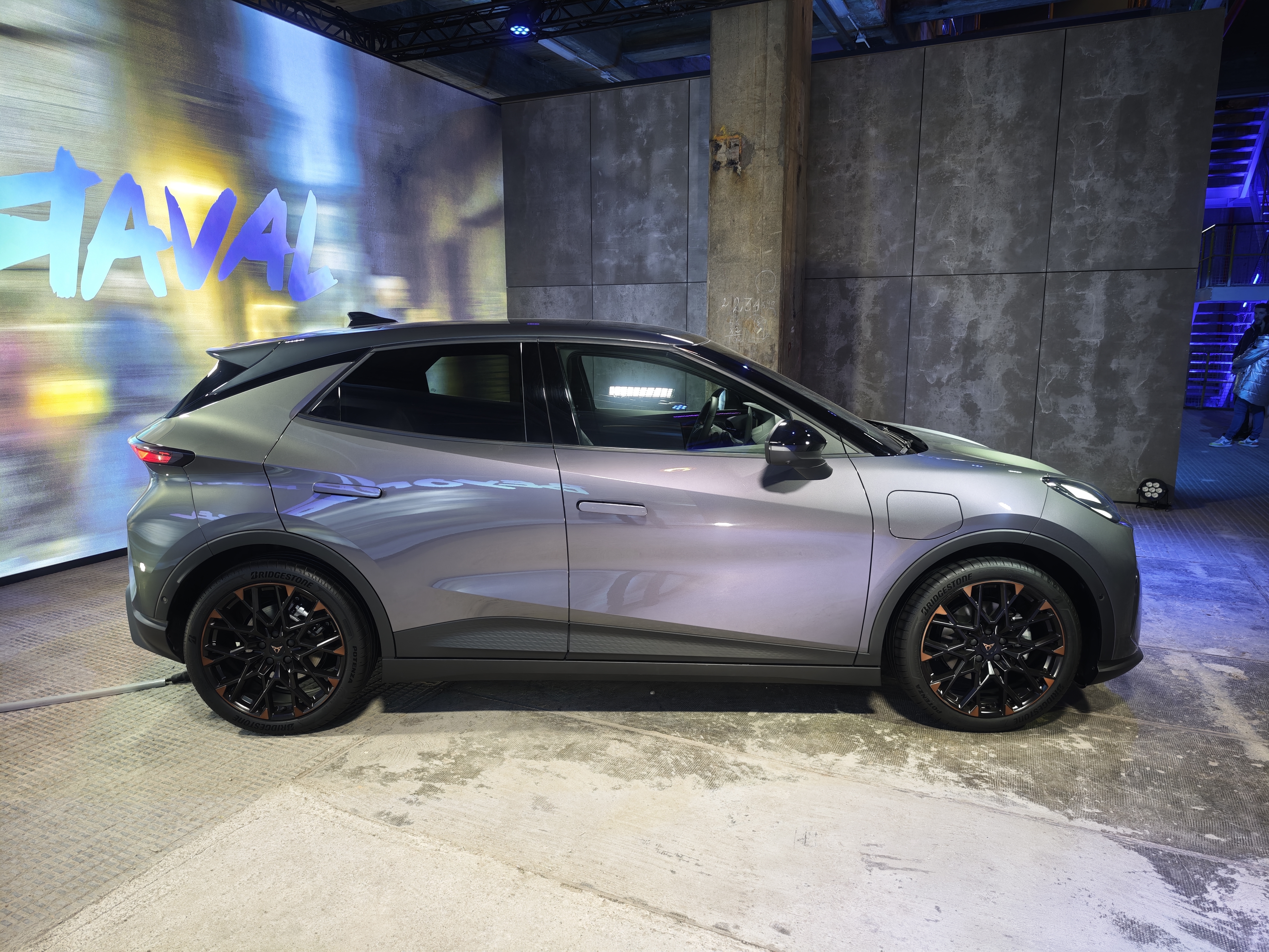 Le profil, lui, est ramassé, musculeux, et les designers veulent nous faire croire à un coupé en utilisant une sorte de fausse ligne de toit noire qui décrit un arc de cercle, toit lui-même de couleur contrastée (noir ou gris) quand on ne le choisit pas couleur carrosserie. Oui, la Raval sera personnalisable vous l’aurez compris, on trouvera sept couleurs au nuancier dont du mat (vert ou bronze) et une inédite teinte « Plasma irisé » aux reflets changeants. On trouve aussi deux nervures sur ce profil, en haut et en bas des portières, qui donnent du dynamisme visuel, mais sans exagération dans les volumes et les creux, comme le Formentor par exemple.