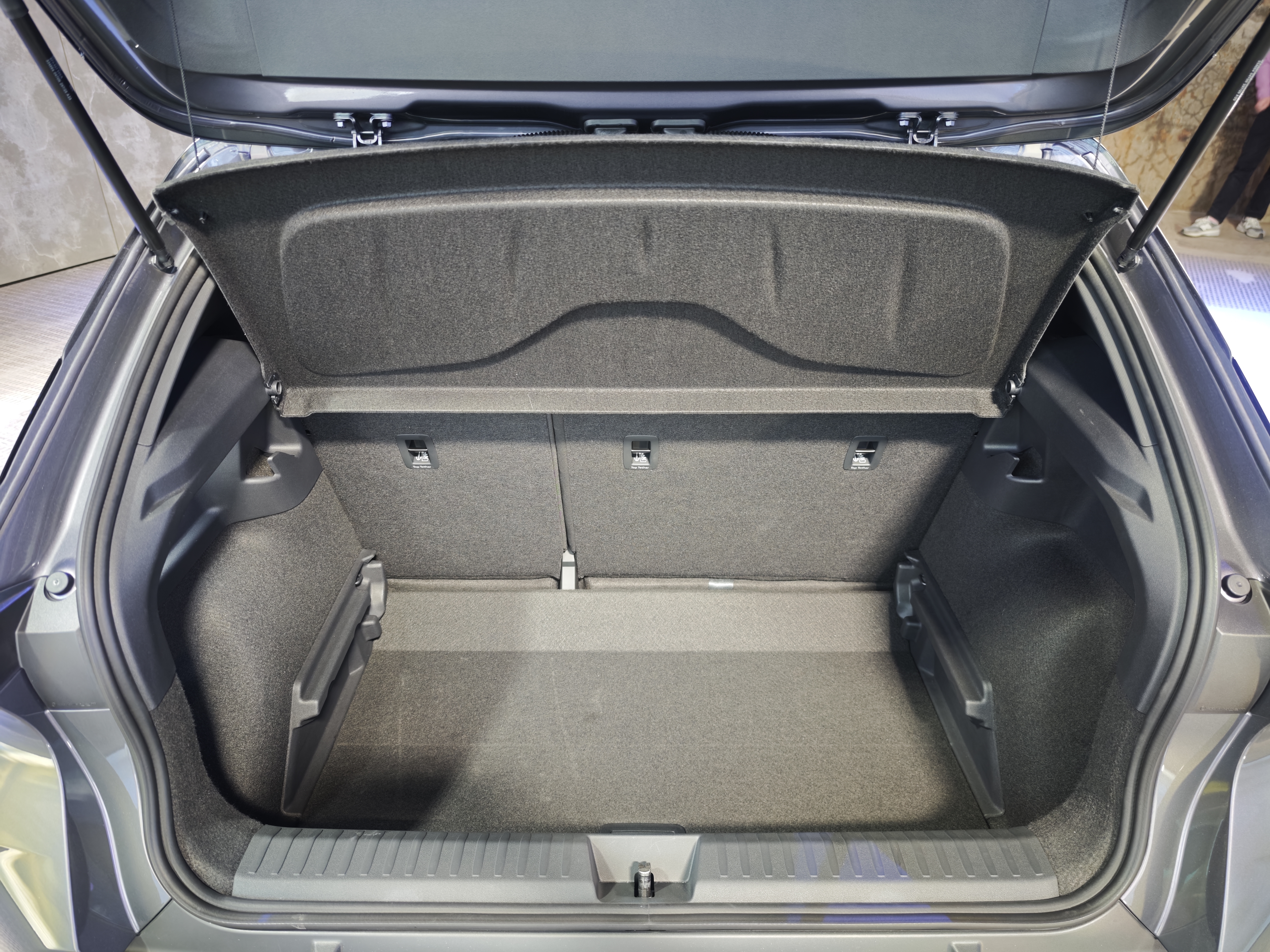 Terminons le tour du propriétaire avec les places arrière et le coffre. Pour les premières, l’espace est moyen pour les genoux et la tête, mais une E-208 ne fait pas mieux, et une R5 électrique est bien pire, mais il faut avouer que cette dernière rend 13 cm en longueur à la Raval. Pour le second, là Cupra a fait très fort. En effet, arriver à caser 441 litres dans 4,05 m de long, c’est un record en matière de rapport encombrement/volume de coffre. Bien sûr, cela tient compte du volume sous le plancher de coffre, qui peut se positionner sur deux niveaux, et de celui d’un rangement supplémentaire situé encore en dessous. Les câbles de recharge y trouveront avantageusement leur place, sachant qu’il n’y a pas de coffre sous le capot.