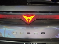 La Raval adopte en effet, en les adoucissant un peu peut-être, les codes stylistiques bien marqués de Cupra. Optiques à signature lumineuse en triangle, calandre travaillée semi-pleine à volets actifs, capot largement nervuré, la face avant en impose. Le logo peut être illuminé, comme il se doit aujourd’hui, du moins quand on choisira en option le pack Matrix LED. Il sera alors accompagné par un éclairage des quatre barrettes en creux, situées au-dessus de la calandre, et d’un logo arrière lui aussi lumineux.
