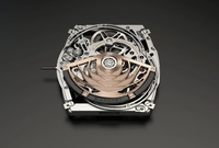Baptisée UltraFino Flying Tourbillon, cette pièce célèbre les 100 ans du Trident avec un sens certain de la mesure tout en restant presque « raisonnable » face à une Maserati MCPura à 228 350 euros. Côté style, l’objet s’inspire directement de l’univers Maserati : cadran ajouré évoquant les jantes, finitions irisées et boîtier en carbone rappelant un châssis monocoque. Sous le verre saphir, un mouvement automatique ultra-fin de 3,85 mm anime un tourbillon en titane capable d’encaisser jusqu’à 5 000 G. Une robustesse légèrement excessive pour consulter l’heure en réunion.