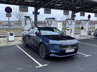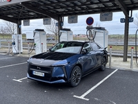 Nous entrons la destination « Strasbourg » dans le planificateur d’itinéraires. Ce dernier fonctionne plutôt bien. Il est possible de sélectionner la charge souhaitée à la borne, à l’arrivée et la puissance voulue. Ce dernier se met à jour en fonction de votre style de conduite, du trafic et de la disponibilité des bornes. Enfin, il préconditionne la batterie pour optimiser le temps de charge (il est également possible de la préconditionner manuellement). Au départ de Paris, le planificateur nous indique une recharge sur le trajet, aux environs de Metz, pour arriver à destination avec 40 % (notre choix). Nous sommes arrivés à la borne avec 12 %. Il aura fallu 25 minutes pour remonter à 80 % malgré une puissance de recharge (160 kW) bien inférieure à la concurrence. En effet, la DS N°8 repose sur une architecture 400 volts. DS a privilégié la puissance de recharge moyenne et dans notre cas, cela s’est montré efficace. La Française aura absorbé une moyenne de 113 kW.