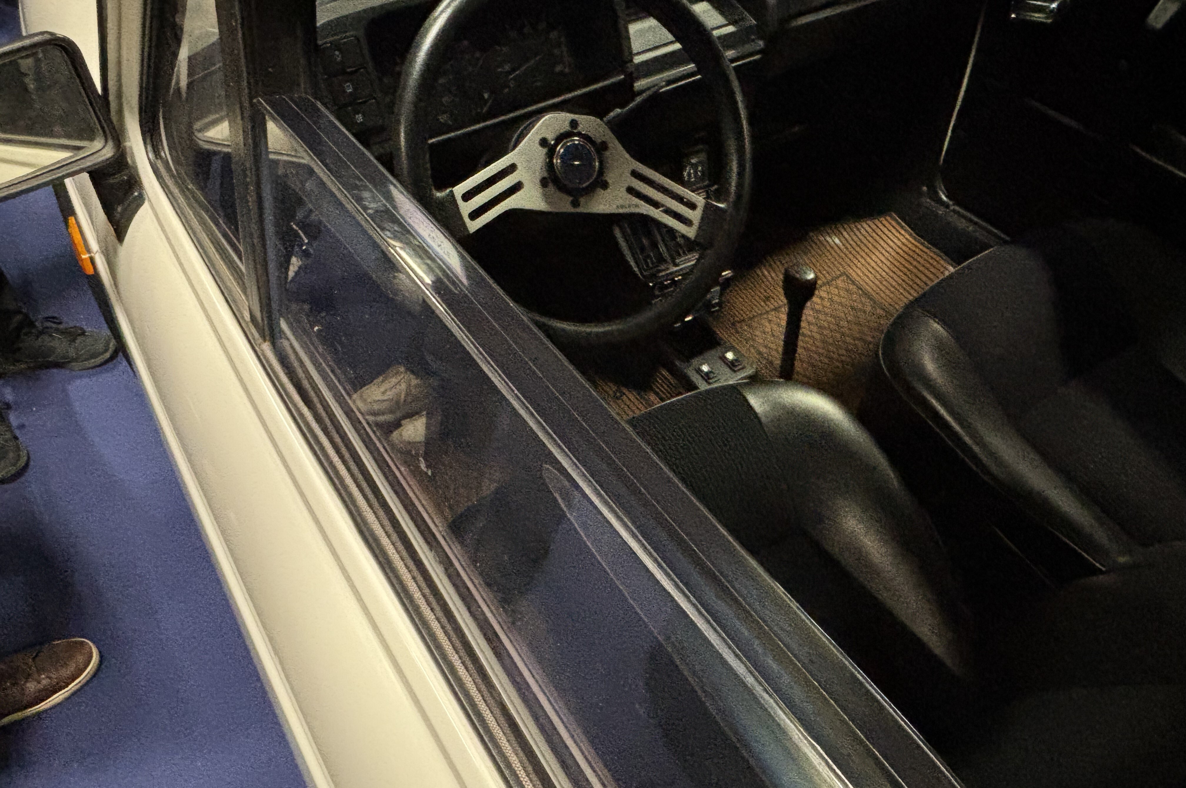 Tous ces équipements sont opérationnels, et pour cause puisque l’auto, datant de 1981, n’affiche que 11 600 km avec un état reste proche de l’origine. À noter tout de même que cette cellule de survie accuse un surpoids de 300 kg ! Un handicap de poids lorsqu’il faut s’échapper au plus vite…