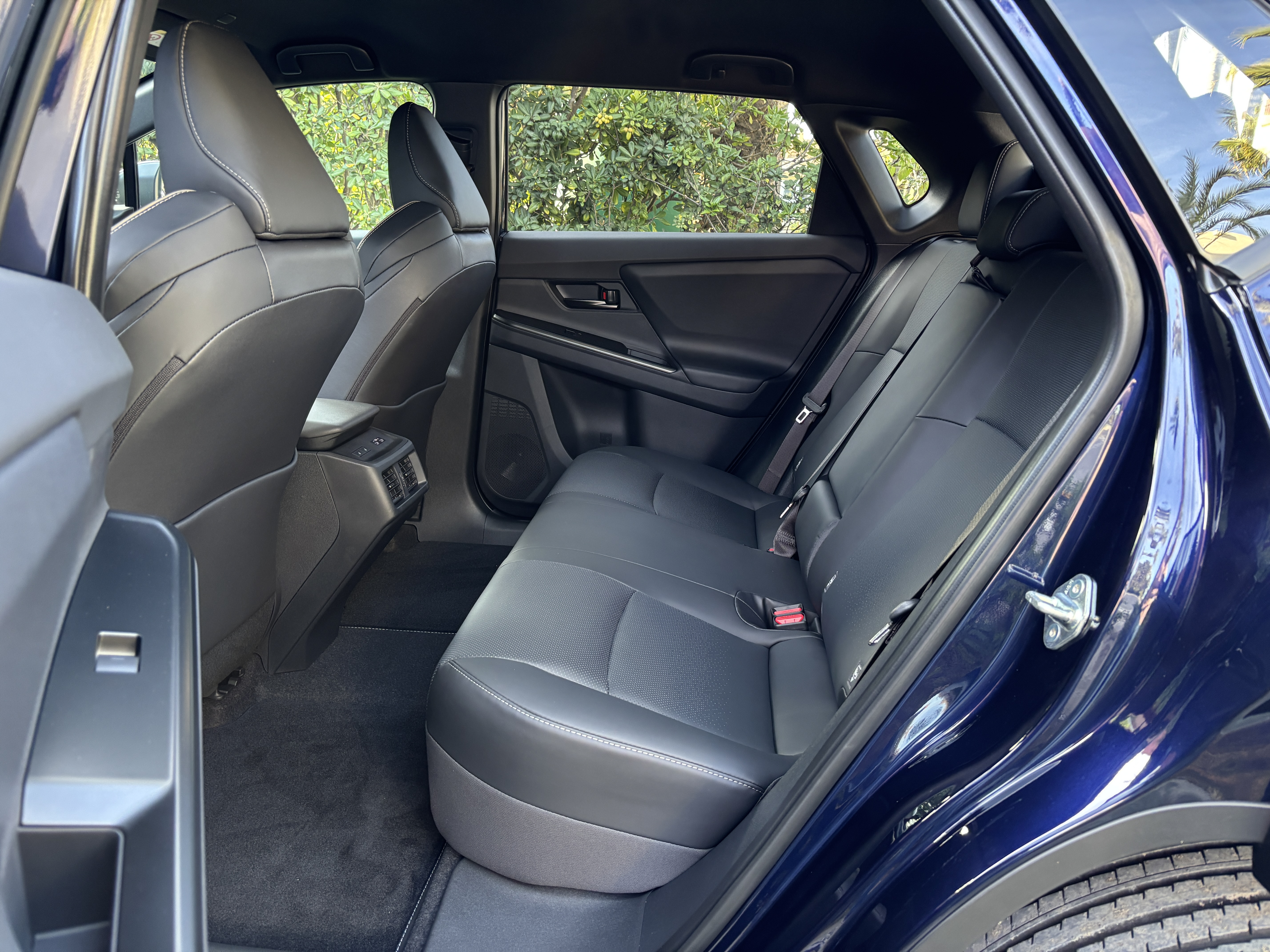 L’écran multimédia, lui, augmente en taille pour passer à 14 pouces de diagonale. Bien que fluide et performant à l’utilisation, il gagnerait à recevoir une présentation des fonctions plus claire ainsi qu’un traitement plus moderne des graphismes. On trouve désormais sur la console centrale deux emplacements de recharge par induction, c’est pratique. L’habitabilité arrière est conséquente, on voit bien que le bZ4X est le modèle familial de Toyota. Il mesure en effet 4,69 m. Par contre, son coffre de 452 litres est en retrait d’une centaine de litres par rapport à ses concurrents et s’avère un peu juste pour partir en vacances à cinq avec les bagages. Un rangement est disponible sous le plancher pour placer les câbles de recharge mais il n’y a pas de Frunk (rangement sous le capot).