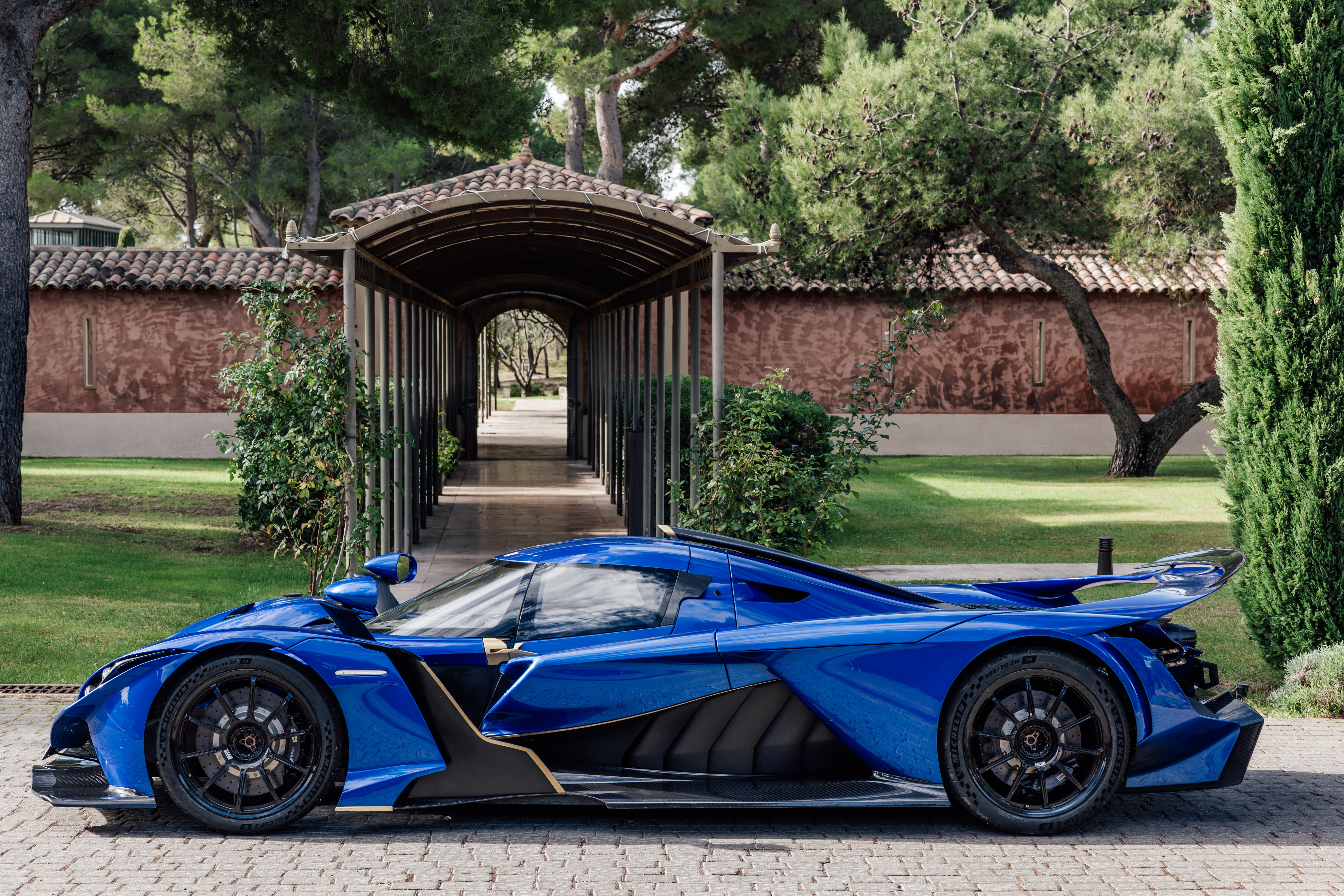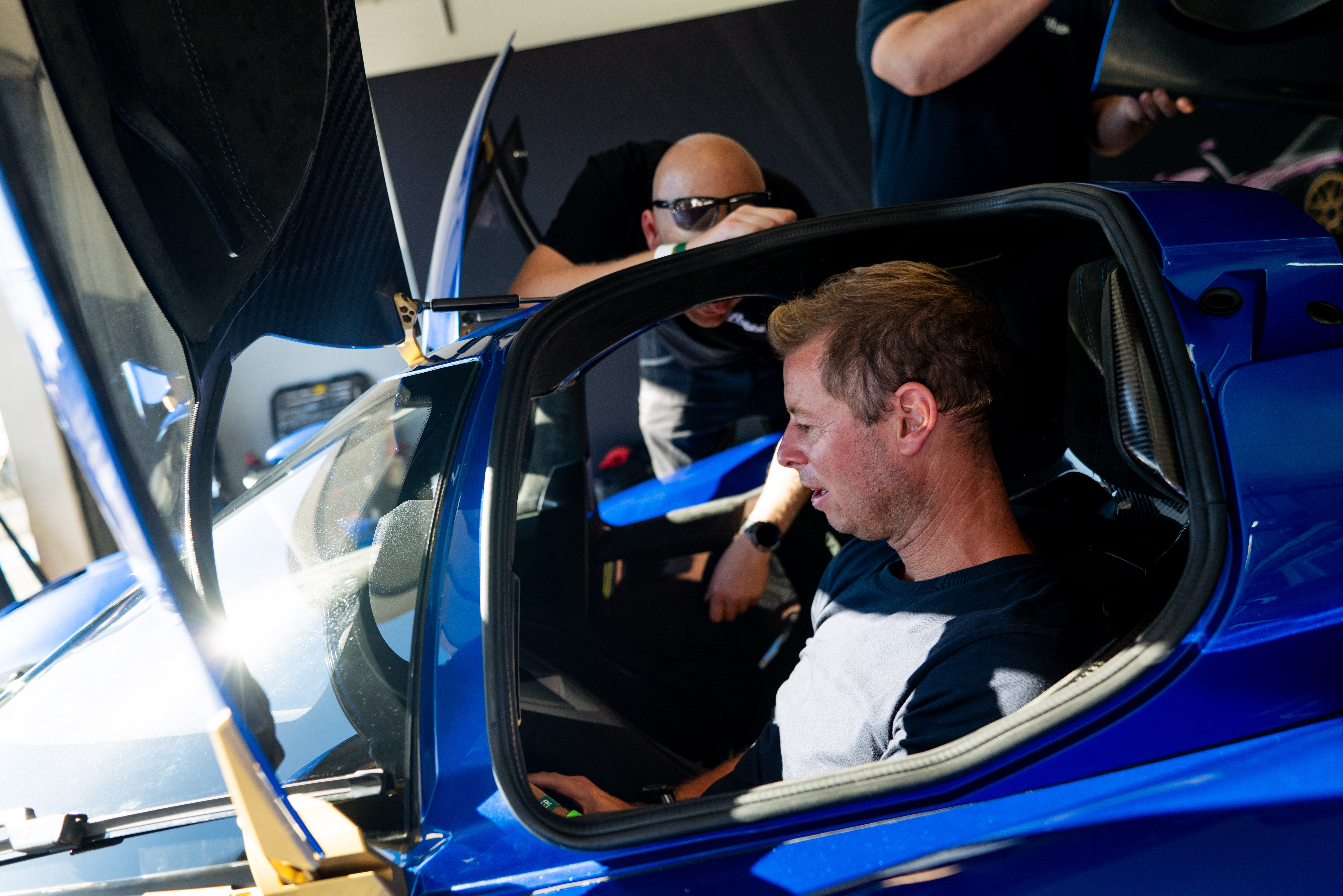 Autre surprise, la qualité d’assemblage et des matériaux de cet habitacle si exigu tend sérieusement vers l’excellence. Il n’y a pas de vraie planche de bord et uniquement un support pour smartphone (si vous voulez de la navigation et de la musique), l’instrumentation s’affichant sur le volant avec des commandes de climatisation situées sur le plafonnier. Mais on n’y touche que du bel Alcantara (les clients peuvent aussi opter pour du cuir), des pièces en fibre de carbone ou des boutons au ressenti cossu. Et le plus fou c’est qu’une fois à deux dans la voiture, personne ne se gêne même avec deux grands gabarits grâce à une séparation qui permet de frotter ni les épaules ni les jambes contre son passager. Incroyable, vraiment, de bénéficier d’une telle finition à bord d’une supercar à la philosophie aussi extrême. Surtout quand il s’agit de la toute première voiture de route d’un nouveau constructeur !