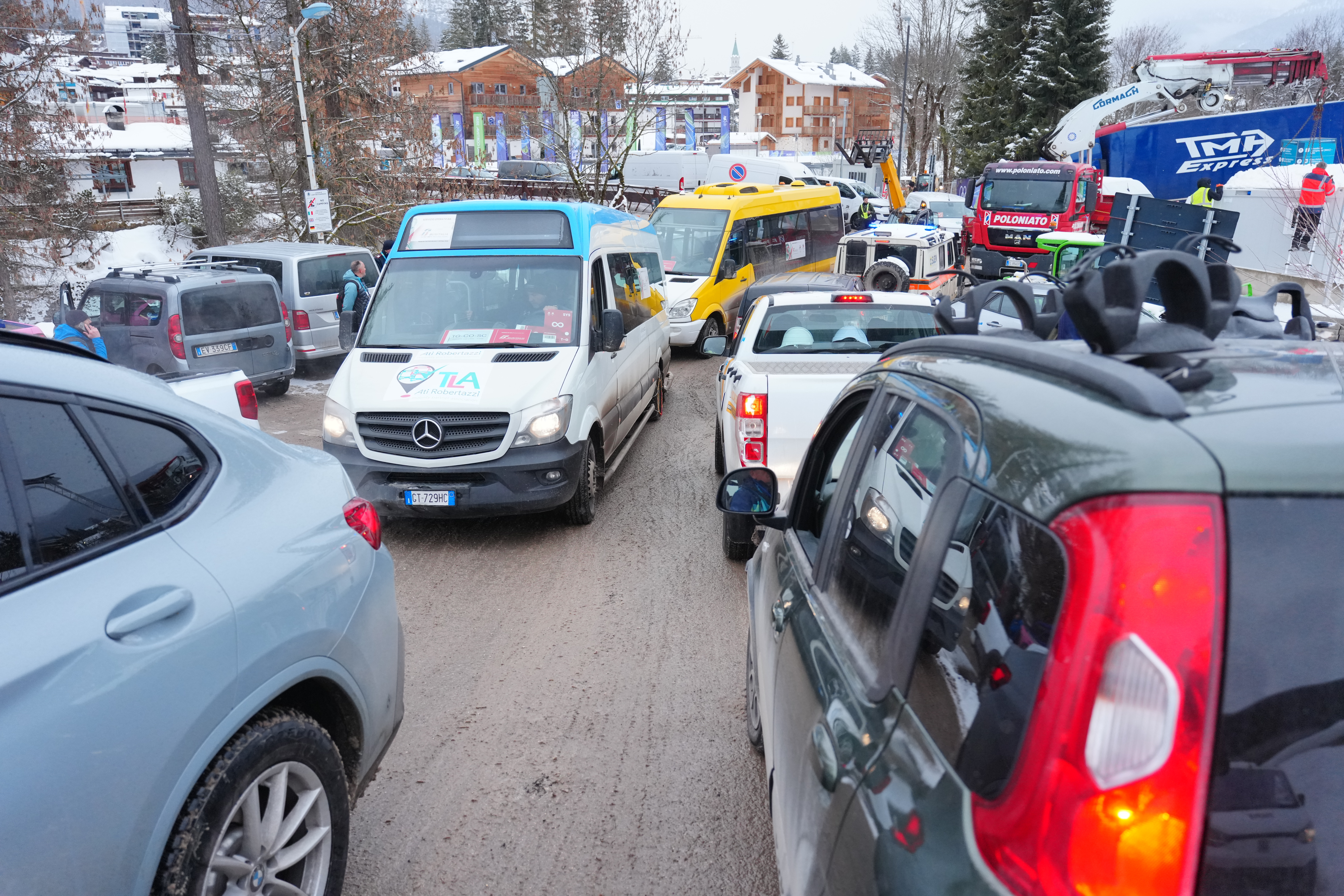 Pour un fan arrivant à l’aéroport de Venise et souhaitant voir le ski alpin à Cortina, le trajet ressemble à un parcours du combattant avec navette, train régional, bus et téléphérique. Les temps de trajets pour aller d’un site à l’autre peuvent atteindre 5 heures en bus. Une fois de plus la voiture reste le mode de transport privilégié.