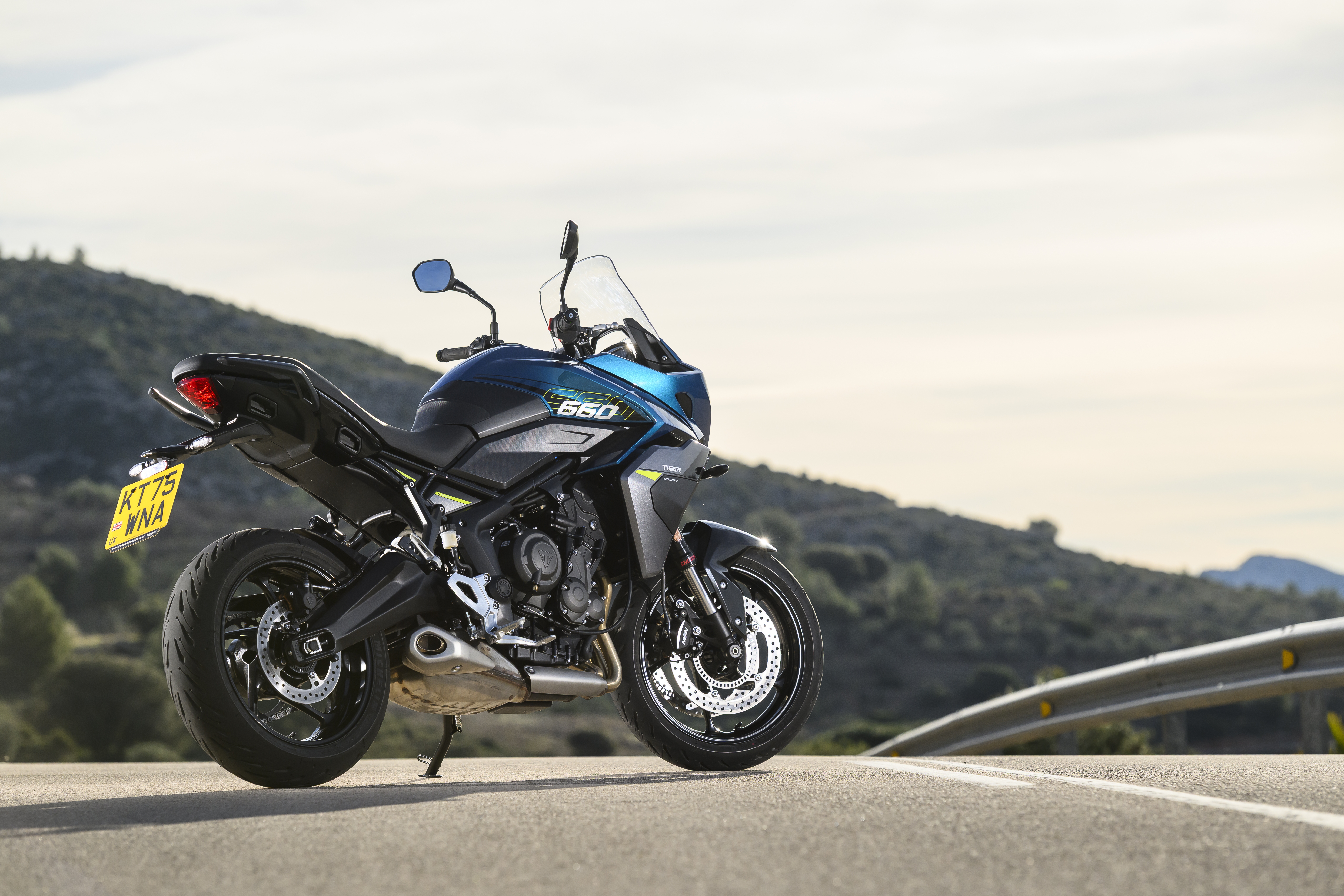 Au fil des 70 kilomètres environ de notre boucle d’essai allant d’un front de mer à la montagne intérieure, la nouvelle Tiger 660 n’a eu de cesse de convaincre du bien-fondé de ses évolutions. Par son comportement prévisible et bien plus sain que celui de la première édition, notamment à haute vitesse, elle convainc et est en mesure de séduire plus encore. Ce que semble aimer la Tiger 660 dernier cru (mais pas dernier cri) ? L’attaque proportionnée, enrouler et être emmenée de manière fluide et déterminée, quel que soit le style de conduite. Sans protestation de sa part, tant elle a progressé et accepte désormais d’être basculée vivement d’un angle à l’autre ou encore de freiner « fort ». Du moins dans la mesure de son système assez modeste.