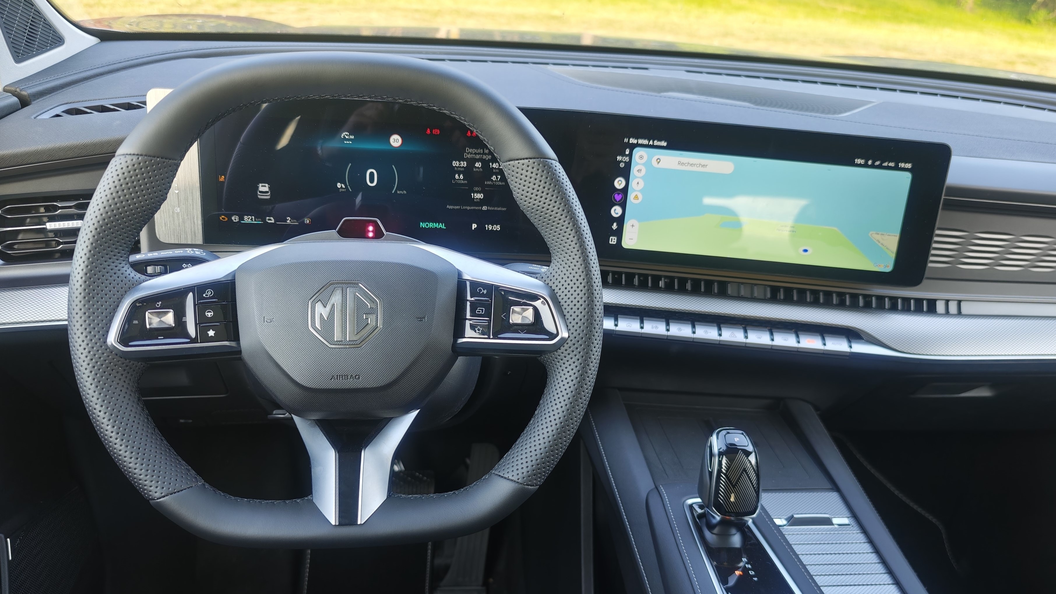 Le MGS9 n'est pas le plus technologique des modèles du marché, mais si l'on considère le prix, il dispose tout de même de fonctions assez techno, comme le contrôle à distance de l'auto via le smartphone, Android Auto et Apple Carplay sans fil, les caméras à 360°, une climatisation tri-zone dont une zone réglable depuis l'arrière, et la fonction V2L, qui permet de recharger ou d'utiliser un appareil électrique en se servant de l'énergie contenue dans la batterie.