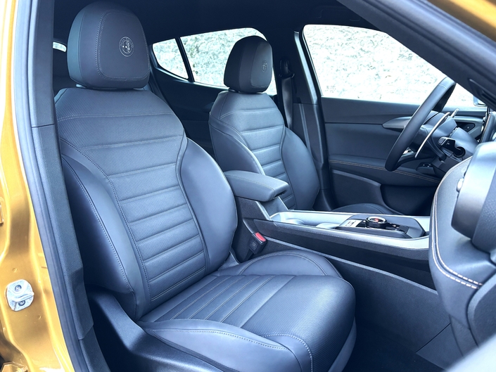 Notre modèle Veloce constitue le haut de gamme en embarquant notamment sièges en cuir réglables électriquement, volant et les buses de lave-glace chauffants, jantes de 19 pouces, projecteurs Full LED Matrix, étriers de frein Brembo rouges, doubles sorties d’échappement chromées, et suspension ajustable électroniquement.