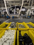 Des « Butlers » (robots convoyeurs) transportent des charges d’une tonne avec pour tout soupir le zozotement des roulements sur le ciment. Dans un ballet millimétré les pièces sont acheminées jusqu’aux postes de travail. Le flux, d’une fluidité mathématique, se joue à roues feutrées, à rythme paramétré, algorithmé.