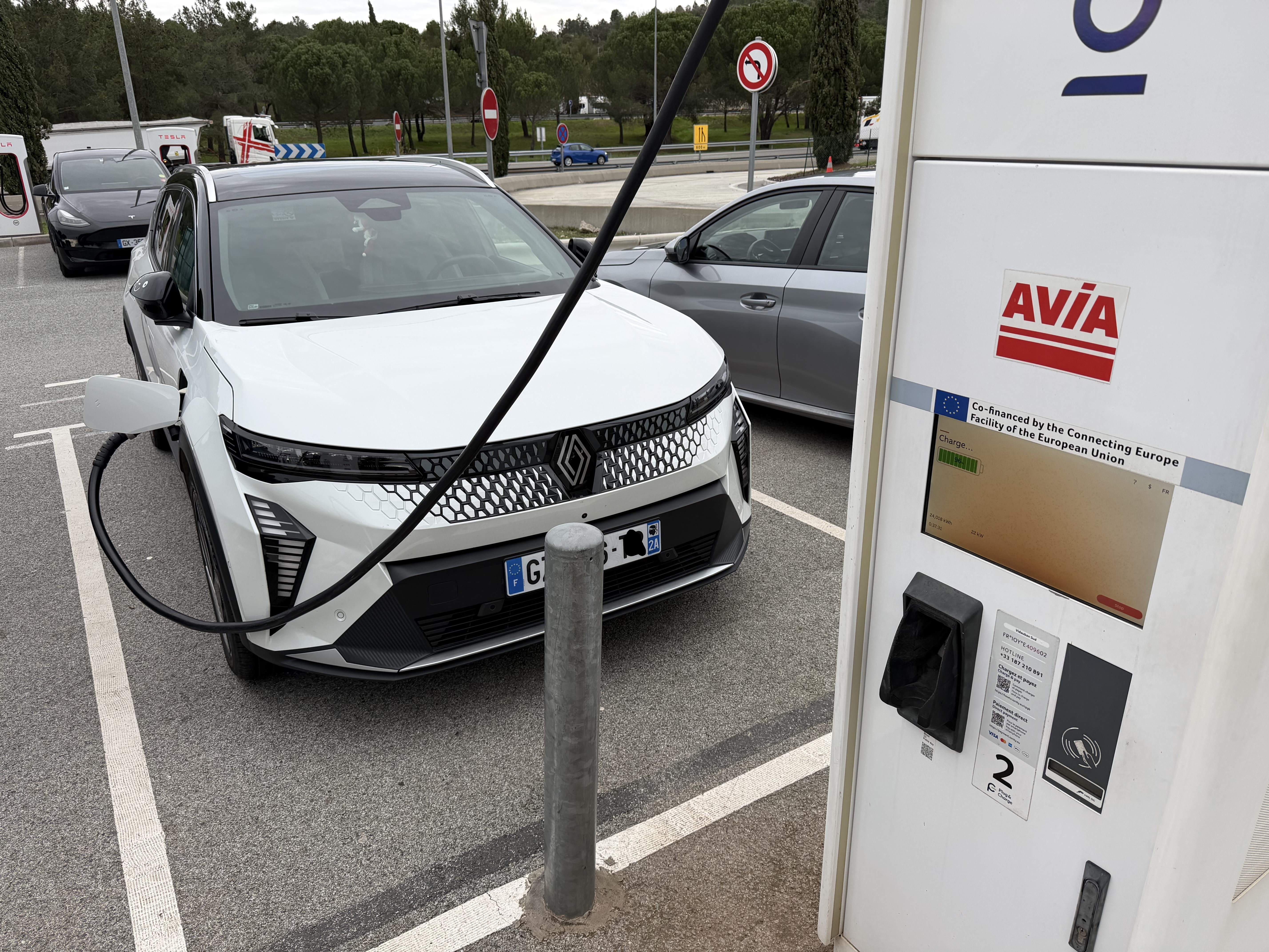 Autre problème posé par cette situation, le fait d’avoir des voitures électriques connectées à des bornes à haute puissance alors qu’elles ne disposent pas d’un circuit interne capable d’atteindre de telles puissances de charges. Le Scénic plafonne par exemple à 150 kW, la E-208 à 100 kW, l’Enyaq à 135 kW dans cette version et le BMW iX xDrive45, à 175 kW. Même s’il est dans les faits impossible ici d’obtenir ces 350 kW lorsque toutes les bornes sont prises, faudrait-il laisser la priorité aux véhicules électriques capable d’encaisser la puissance maximale de la borne ? En pratique, cela paraît tout simplement impossible car on arriverait à une forme de ségrégation entre propriétaires de véhicules à 400 volts et privilégiés en 800 volts ! Mais je constate hélas qu’en période de pointe et avec un peu de malchance, voyager en voiture électrique peut rester plus compliqué qu’en véhicule thermique alors que je n’avais pas eu le moindre problème lors de mes précédents voyages même pendant les chassés-croisés de l’été. Tout du moins lorsqu’on a la chance de disposer d’un véhicule électrique aux performances de charge à la pointe et qu’on veut passer le moins de temps possible à la borne en profitant de cet avantage. Voilà donc de nouveaux problèmes éthiques qui se posent pour les utilisateurs de voitures électriques !