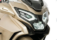Cette nouveauté de 730 cm³ dispose d’un bicylindre développant 75 chevaux, et s’affirme avec une face avant intégrant un triple phare à LED et un large pare-brise panoramique réglable électriquement en hauteur.