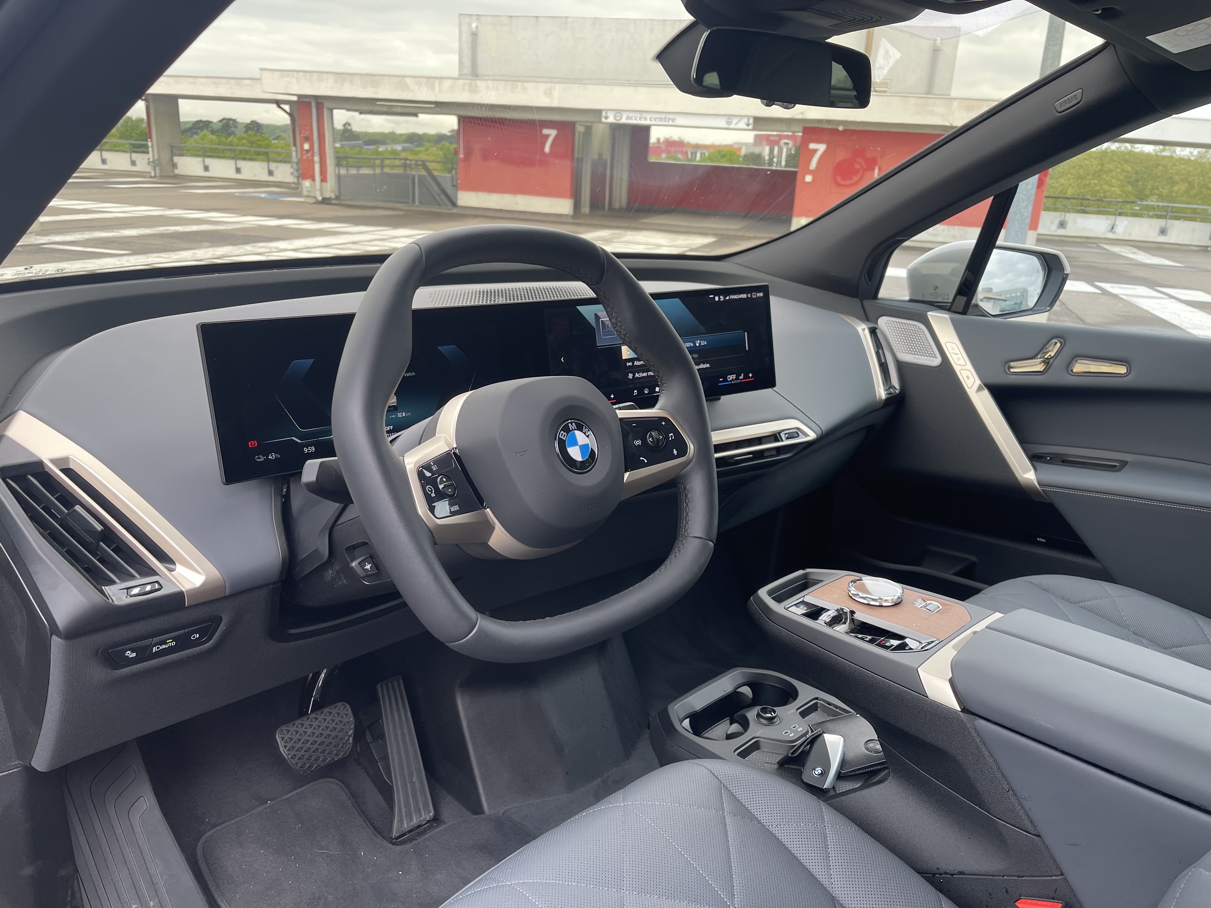 Pour cet essai, nous disposons d’un iX45 doté de nombreuses options, notamment la suspension pneumatique (2 200 €), les roues arrière directrices (1 500 €), les jantes de 21 pouces (1 800 €), la clim quadrizone (850 €), le toit panoramique Sky Lounge (3 350 €), la sellerie cuir Amido (3 600 €), la hifi Bowers&Wilkins (4 800 €), ou encore les applications intérieures Clear&Bold (1 150 €), ce qui porte son prix à plus de 120 000 €…