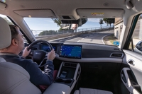 L’autre version, Boost, ici à l’essai va plus loin en électrique grâce à son accumulateur de 18 kWh et 90 km affichés sans brûler une goutte de carburant. En contrepartie, le poids grimpe de 110 kg (1 620 kg), mais la puissance progresse à 212 ch malgré l’emploi de la même chaîne de traction. La puissance délivrée par la batterie est ici plus élevée, permettant à l’électromoteur de mieux s’exprimer. C’est d’ailleurs lui qui transmet sa puissance aux roues avant. Toutefois, le bloc thermique peut aussi le faire, mais uniquement au-dessus de 70 km/h et lorsque le niveau de la batterie est bas.