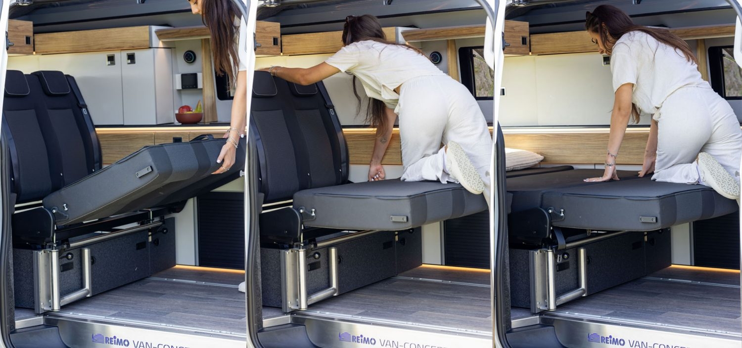 Cette modularité, et ce coffre ainsi dégagé (qui peut contenir plus de 5 000 l) explique le nom du modèle : Reimo TrioStyle. Parce que l’engin entend bien remplir trois fonctions : une voiture du quotidien, un van aménagé, bien sûr, mais aussi un utilitaire.