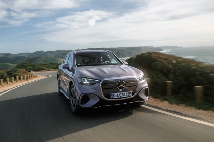 La principale différence est bien évidemment le style. Immédiatement, on remarque l’immense calandre lumineuse constituée de 942 "pixels". Après la CLA et ses 142 étoiles, Mercedes continue dans cette direction, même si certains – dont je fais partie – trouveront que c’est un peu too much. Cela donne en tous les cas au GLC une sacrée personnalité qui est également due à la nouvelle signature lumineuse composée d'étoiles, que ce soit dans les projecteurs avant ou les feux arrière. Ces derniers sont ainsi reliés par un bandeau lumineux, un artifice que l’on retrouve régulièrement sur les modèles électriques. Petit détail amusant, le capot est parcouru par de nombreuses nervures, qui renforcent le dynamisme des lignes, comme pour certains modèles thermiques, il y a quelques années.