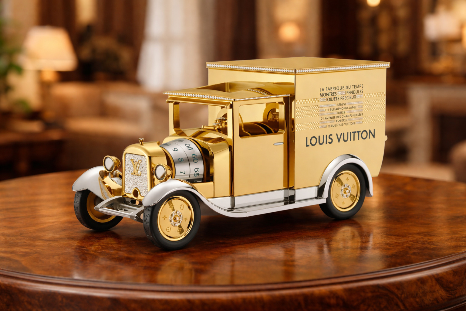 Consacrer plusieurs centaines de milliers d’euros à une auto implique généralement de pouvoir en faire quelque chose sur la route. Dans ce cas de figure signé Louis Vuitton, le produit baptisé Camionnette Edition Limitée se veut purement décoratif. Le modèle en question concerne en effet une horloge de table façon camionnette de luxe facturée la bagatelle de 650 000 euros.