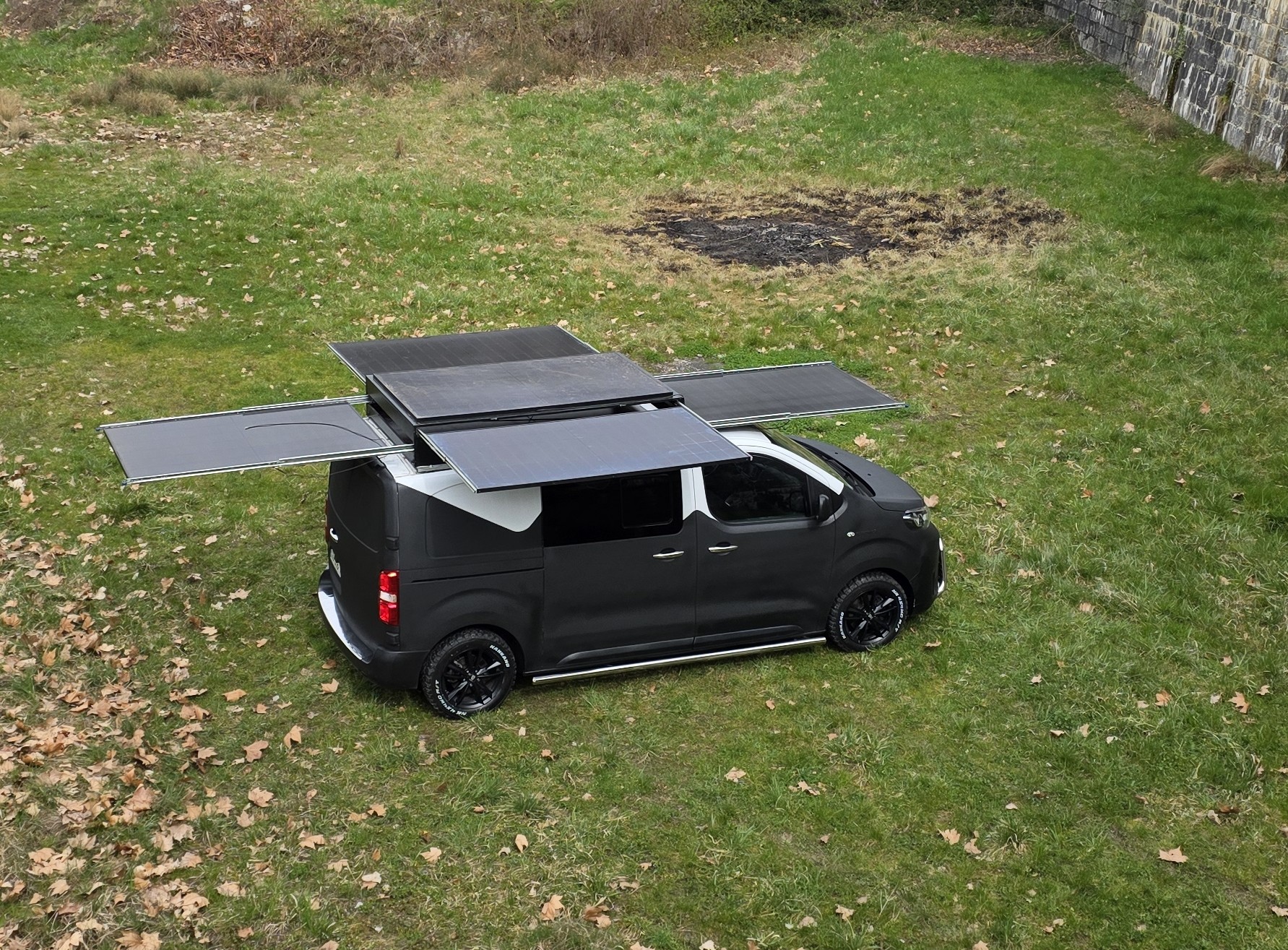 Car les panneaux, montés en série, doivent être dépliés pour être efficaces. Au nombre de cinq, ils font ressembler le van à un drôle d’hélicoptère. Une architecture qui, évidemment, n’est opérationnelle qu’à l’arrêt.