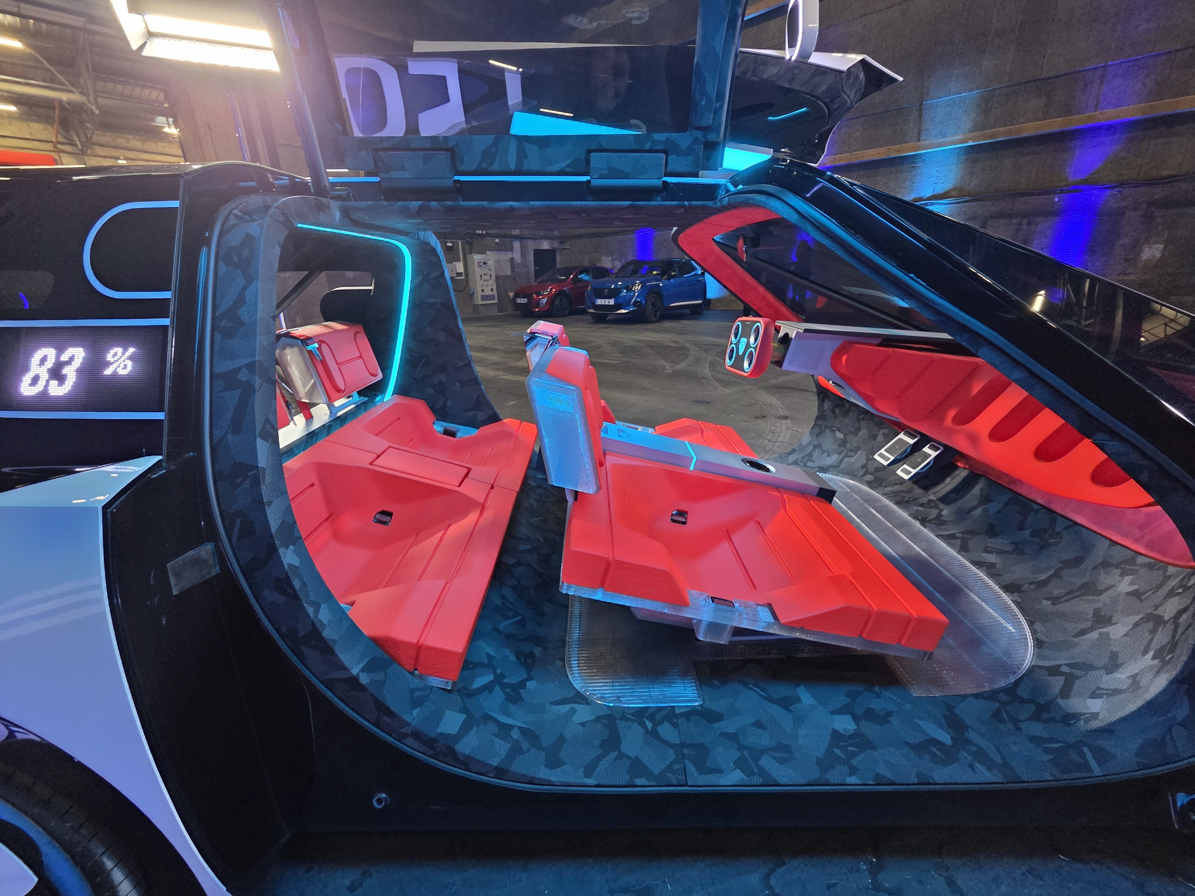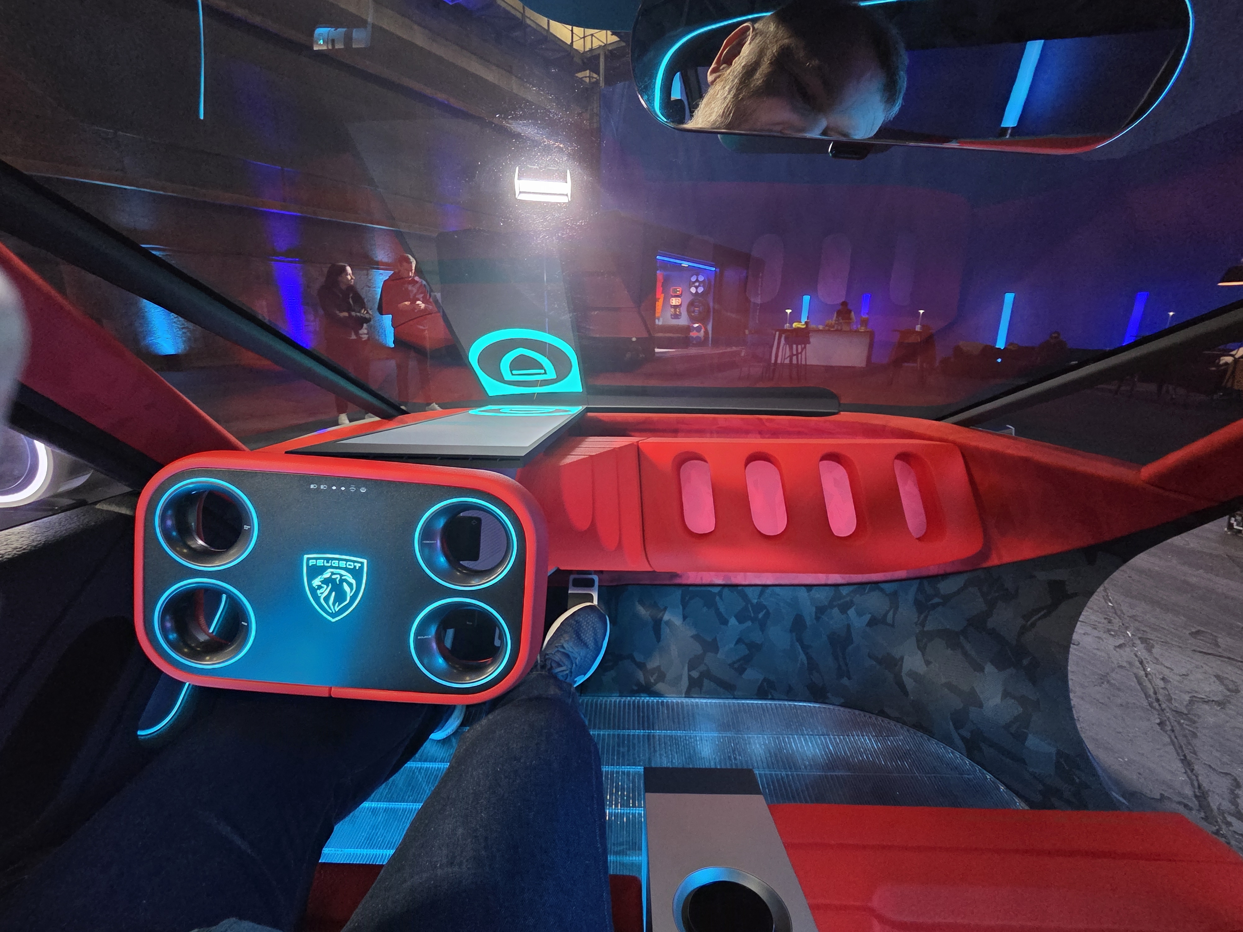 Face au conducteur, aussi, il y a de l’inédit. Si, pour vous, un volant est forcément (presque) rond, pas sûr que vous appréciez l’HyperSquare. Sous ce nom qui fleure bon la science-fiction, on trouve un volant (appelons-le comme ça malgré tout) rectangulaire simplement percé de quatre trous, ce qui lui donne des airs de brique Lego. Mais rien n’est gratuit ici. Ces trous accueillent les commandes (multimédia, aides à la conduite, voire clignotants) habituellement repoussées sur les branches du volant et les commodos. Et si la partie centrale est pleine, c’est uniquement parce qu’elle accueille l’indispensable airbag. Le plus incroyable, ce n’est toutefois pas sa forme, mais le fait que, Peugeot nous l’a assuré, la version de série le reprendra quasiment tel quel. Pour ne pas trop dérouter les clients, des commodos prendront toutefois place, de façon classique, sur la colonne… qui n’est ici pas de direction.
