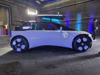L’abandon de la colonne de direction a permis, notamment, de réduire la planche de bord à sa plus simple expression. Face au passager, c’est quasiment le vide avec simplement un élément de mobilier auquel il est possible d’accrocher certains accessoires. Une idée qui ne devrait pas se retrouver de sitôt en série, mais qui permet de mettre en avant l’impressionnante verrière qui sert de pare-brise. Outre la luminosité que cela apporte à bord, cela permet aussi, et surtout, de supprimer quasi totalement les angles morts vers l’avant. Un bon point pour la sécurité.