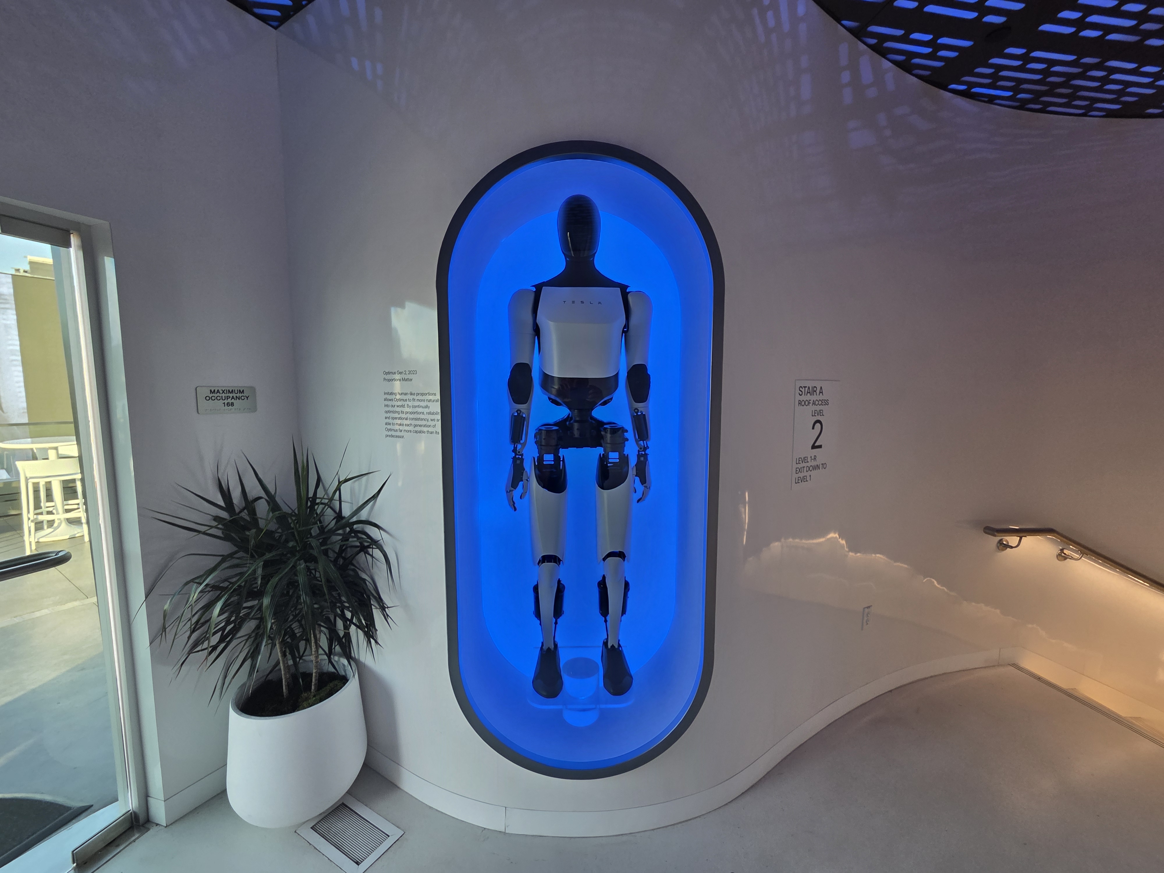 Culte de l’entreprise oblige, on découvre ici et là des vitrines mettant en valeur les modèles de la marque ou ses autres créations, tels que les robots Optimus.