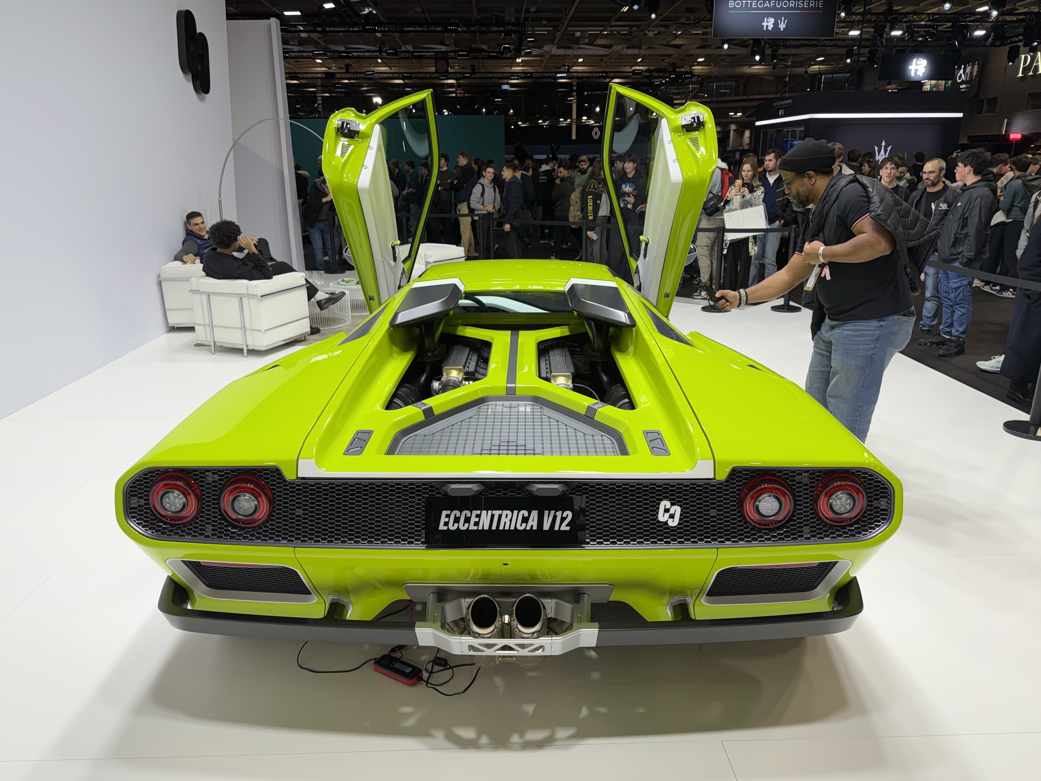 Il y a aussi plusieurs modèles surfant sur la tendance « restomod » ultra-haut de gamme, tous plus fascinants les uns que les autres. L’Eccentrica V12, cette Lamborghini Diablo remise au goût du jour, hypnotise littéralement les visiteurs avec son vert fluo et son superbe intérieur blanc. La HWA Evo, une Mercedes 190 Evo moderne (et utilisant un V6 biturbo au lieu du 4 cylindres originel, est tout aussi remarquable. Même constat pour la Nardone, cette Porsche 928 de 500 chevaux transformée par un Français avec l’aide d’une équipe italienne.