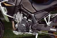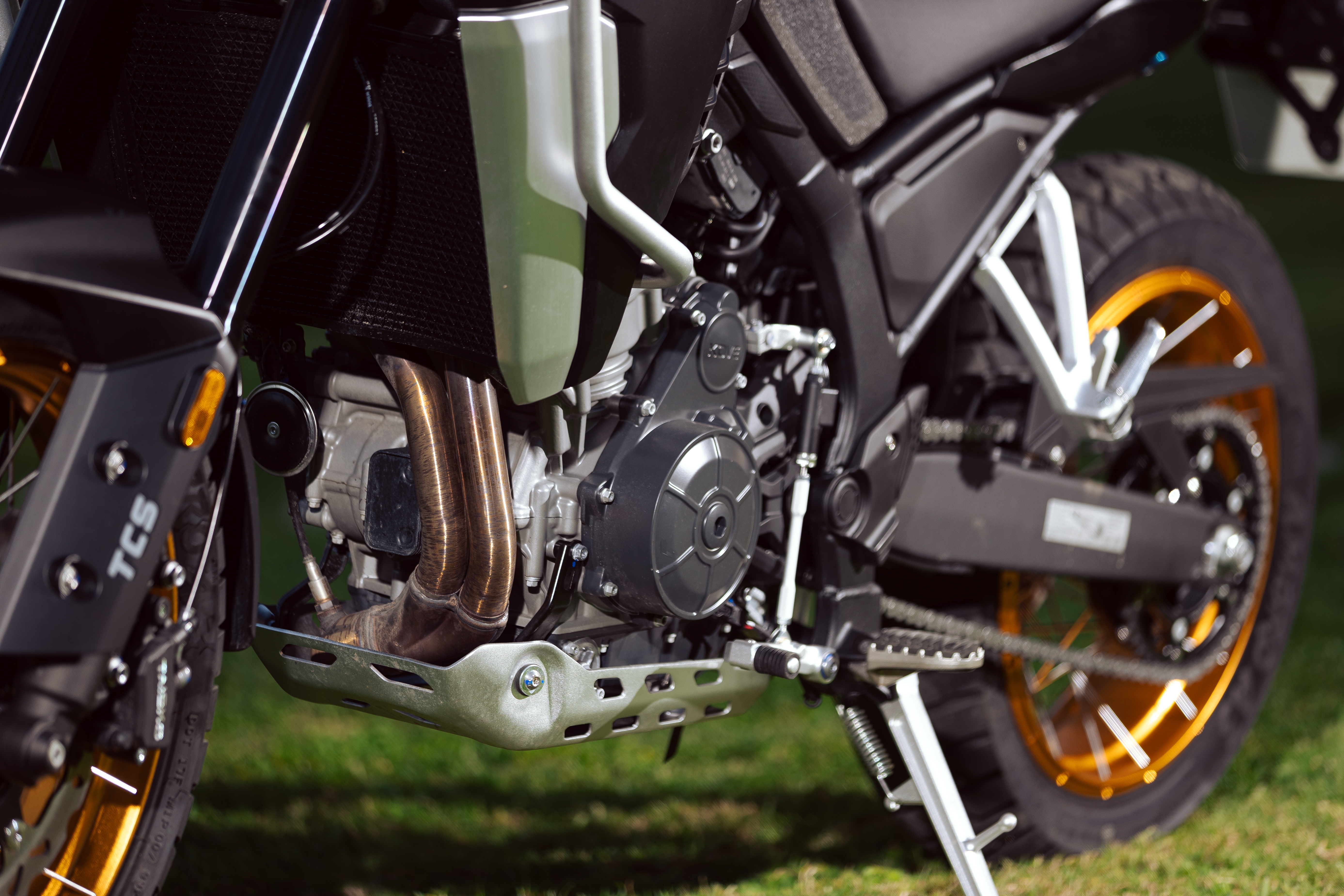 Si CF Moto fabrique les moteurs KTM, il n’y a pas d’accord entre Kove et le groupe autrichien : le bloc boulonné dans le cadre des Kove 800X Pro, Rally et GT est une copie du bicylindre parallèle refroidi par eau, à 2 arbres à cames en tête et 8 soupapes LC8c. Ses côtes sont identiques (88 x 65,7 mm), tout comme son calage (285°)… mais cette interprétation développe 95 ch à 9 000 trs/mn et 8 mkg de couple à 7 500 trs/mn contre 95 ch à 8 000 trs/mn et 8,9 mkg à 6 500 trs/mn chez KTM et 91 ch à 8500 tr/min et 8,8 mkg à 6750 tr/min chez CF Moto.