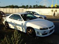 Ils sont fort ces anglais.. enfin ils ont de la chance surtout, mais on ne va pas revenir sur leur possibilité d'évasion automobile aujourd'hui.. mais leur volant a droite leur permet d'avoir bien évidement plus de véhicule en import direct du japon, comme les Skyline, Subaru 22b etc..Mais cela ne signifie en aucun cas qu'ils ont bon goût.. comme le prouve cette Skyline dénichée par Eddy en balade sur notre territoire et affublée d'immondes paupières de phare.. comment peut on faire ça a une auto de de ce rang? Je me demande encore..Et c'est dommage car le reste est plutôt pas mal..avec un look typé qui colle bien a la personnalité de l'auto.. teinte blanche, jantes or, échappement gros diamètre, un peu de Nismo par ci par la... et le tour est joué :!!!