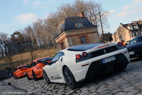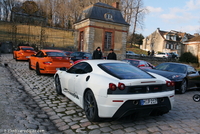 Toujours dans la thématique de la sortie Ferrari, nous rentrons aujourd’hui dans les gros calibres avec un florilège de Ferrari F430 Scuderia faisant office d’épouvantails à ce meeting pour grands garçons.Si vous aimez ce gros bonbon alors vous allez en prendre pleins les yeux, a défaut de pouvoir vous régaler les oreilles, avec cette myriade de couleurs toutes plus délicieuses les unes que les autres, du rouge, du jaune, du blanc, du gris ! Et pour tout le monde le V8 4.3l 510 chevaux associé à la tonitruante boite F1, distillant une sonorité assourdissante.Une magnifique GT qui se prête gentiment au jeu de la pose mais qui ne demande qu’à s’évader sur l’asphalte afin de mettre à profit son incroyable potentiel.