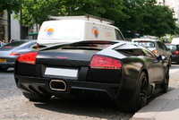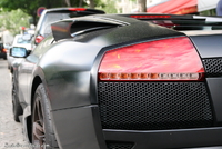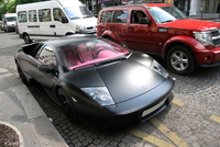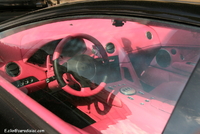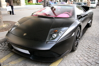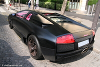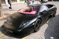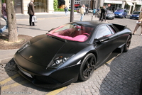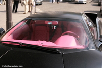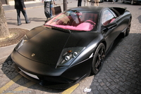 Aujourd’hui un amalgame certain risque de se créer en la rubrique de la photo du jour et celle de la saucisse du vendredi.. (enfin pour certains)..En effet cette Lamborghini Murcielago LP640 rigolote s’offre a nous dans une robe insolente qui associe 2 thématiques de couleur assez contradictoires entre l’habitacle et l’extérieur..En effet les courbes masculines, et viriles de cette belle italienne sont bonifiées et accentuées par cette teinte noir satiné assez technique, mais probablement assez compliquée à entretenir.. Look sobre et furtif de rigueur..En activant les lourdes portes, on pénètre dans un habitacle ou règne une ambiance assez légère et funky a base de rose très enfantin, limite coquin.. Une allure assez étonnante qui pourrait presque prendre la forme d’une blague, si ce n’était pas sur une auto de ce prix la.. mais l’égout et les couleuvres..Heureusement qu’il nous reste le V12 6.5l de 640 chevaux, sa poussée de grosse brute, et sa sonorité a réveiller les morts pour nous remonter le moral.. le reste n'est que littérature