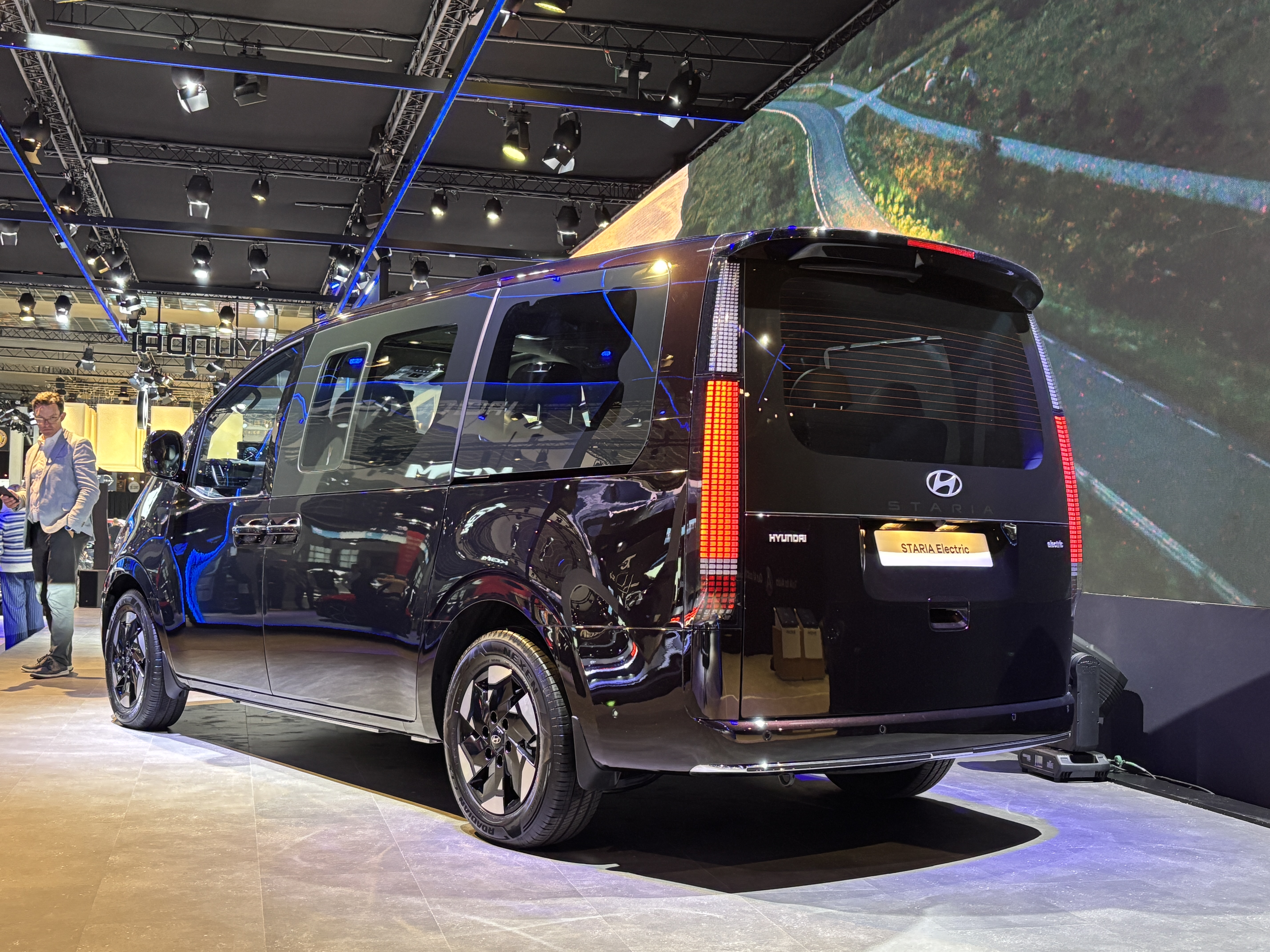 Toutes les photos - Première Mondiale pour le Hyundai Staria électriqueDans Salons / Salon de BruxellesAlexandre Bataille Le 09/01/2026 à 17:30Hyundai présente pour la première fois la version électrique du Staria. Le van capable de transporter jusqu'à 9 passagers peut parcourir 400 km en une charge.