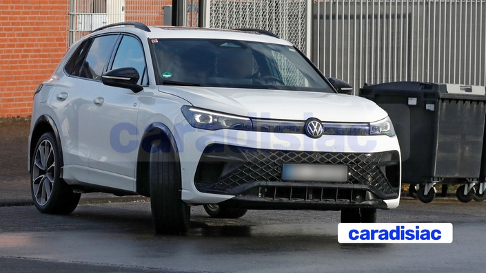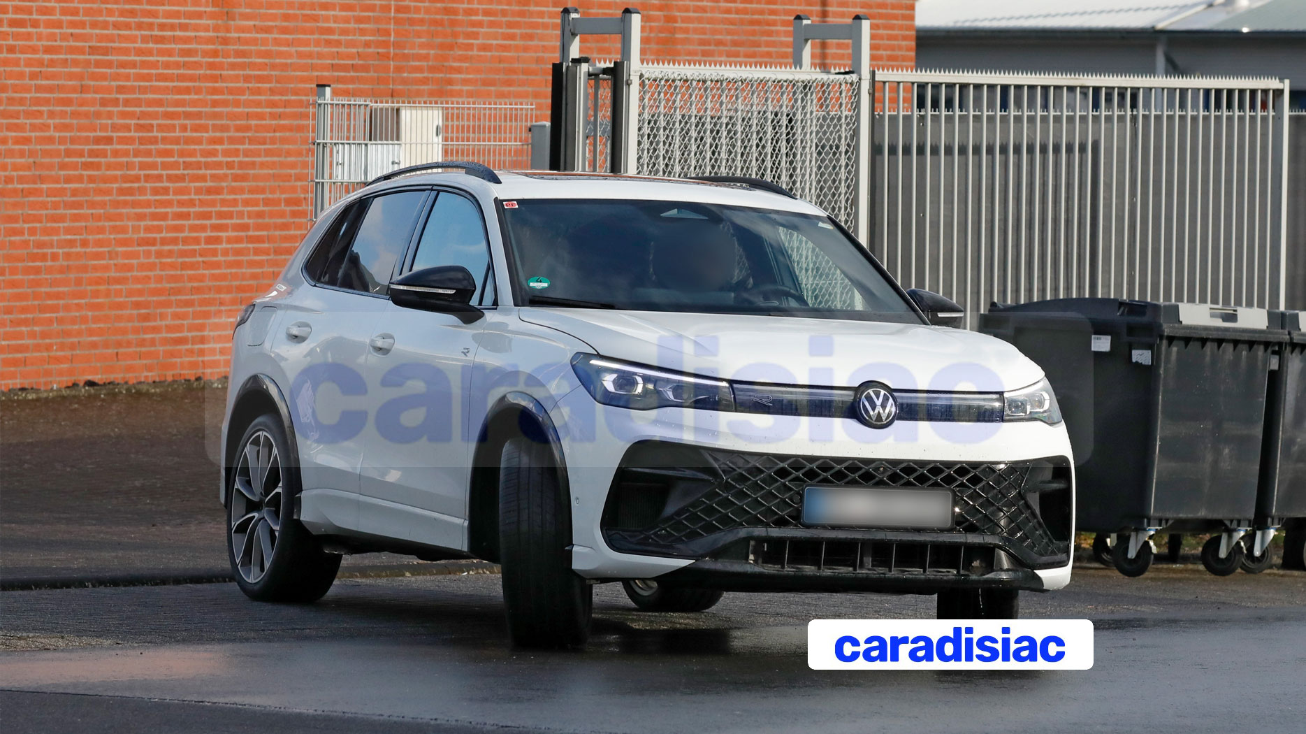 Nos chasseurs de scoop ont repéré deux prototypes de ce futur Volkswagen Tiguan R sur le réseau routier proche du Nürburgring. Il y a un prototype de couleur blanche et un autre de couleur grise, les deux prototypes diffèrent légèrement. Ainsi le prototype gris conserve le système de freinage Audi (on voit marquer RS sur les étriers à l’avant) et des sorties d’échappement plus épaisses, tandis que le prototype blanc est plus proche de la période qui précède celle de la mise en production. Le modèle « R » coiffera la gamme Volkswagen Tiguan et devrait être dévoilé avant la fin de l’année pour une commercialisation en 2027.