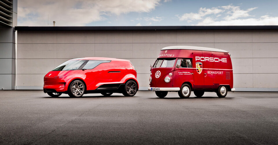 Depuis, le Dakar s’en est allé, Porsche a stoppé son programme de rallye-raid et ses délires utilitaires. Mais pas tout à fait. En 2018, la marque a intégré le groupe VW au travers de participations croisées et histoire de saluer le mythe Combi, ses designers se mettent au travail pour concocter un engin bizarre très très lointainement inspiré des T1 et T2. Un concept est assemblé et baptisé Porsche Vision Renndienst.
