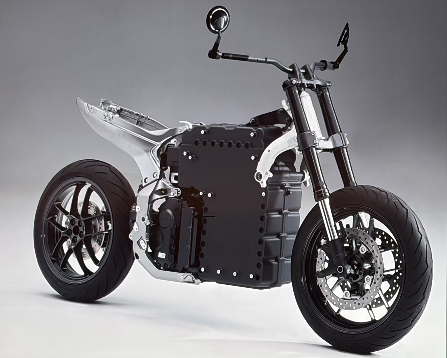 Mais la grande révolution esthétique et technique réside ailleurs : la WN7 est aussi la première Honda dépourvue de cadre traditionnel. Son châssis en aluminium est directement monté sur la batterie, qui devient donc un élément structurel porteur. Aucune poutre ni tube conventionnel ne vient donc relier les parties avant et arrière.