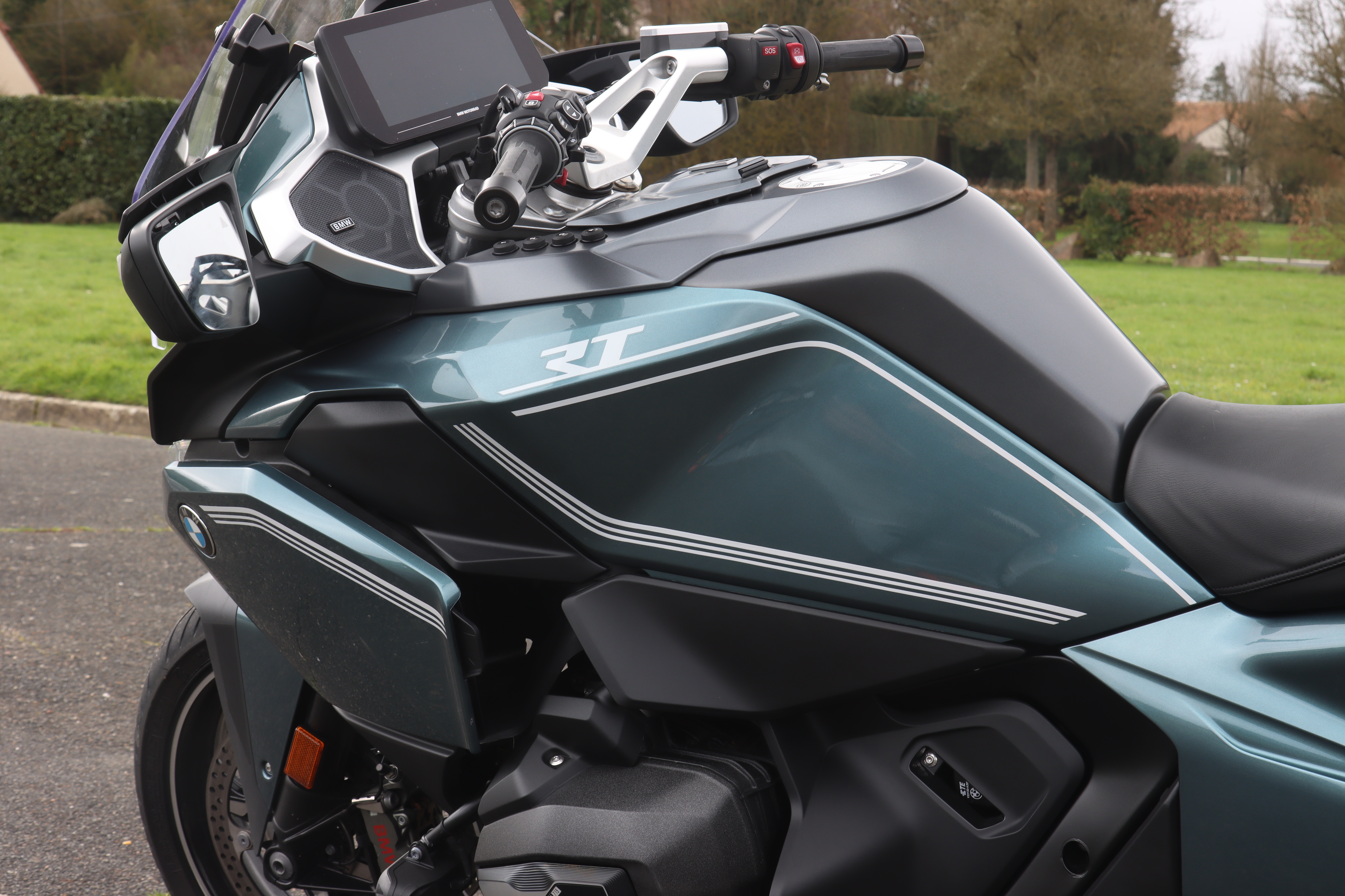 Sur la RT, les suspensions actives Dynamic ESA de série peuvent être accompagnées de l’option Dynamic Chassis Adaption (DCA) qui permet de bénéficier de deux modes de suspension (Road et Dynamic) commandables au guidon indépendamment des modes de conduite. Appelés Road et Dynamic, ces modes génèrent des assiettes différentes (la RT est plus haute de l’arrière en Dynamic, de manière à augmenter la vivacité de direction). Le DCA comprend aussi le système d’aide à la mise de la moto sur la béquille centrale. Quand à la hauteur de selle, pas besoin de mode électronique la réduisant via les hydrauliques de suspensions : la RT est plus basse (820 à 840 mm), équipée d’une selle basse à arcade étroite elle peut être réduite à 780 mm.