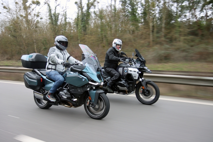 La base technique de ces motos est identique : le trail, la routière (ainsi que le roadster R et la sportive RS) partagent le même gros bicylindre boxer lancé en 2023 dans la GS et complètement remanié par rapport à la génération précédente.