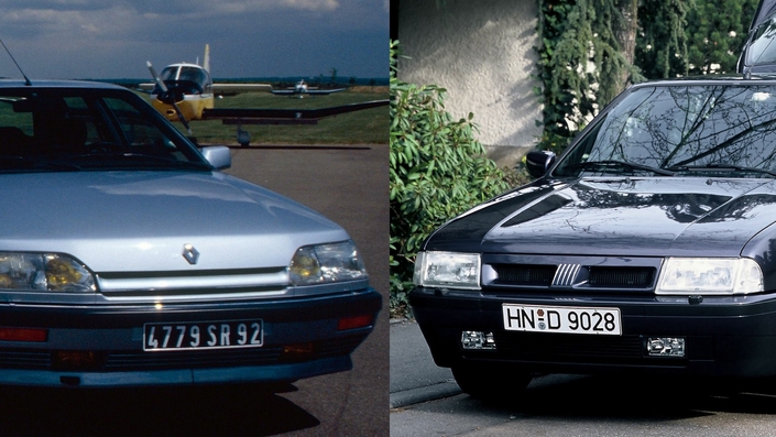 Avantage : Fiat. Grâce à son excellent moteur et son comportement routier très sûr, la Croma gagne ici, face à une R25 qui réplique avec une suspension plus confortable.