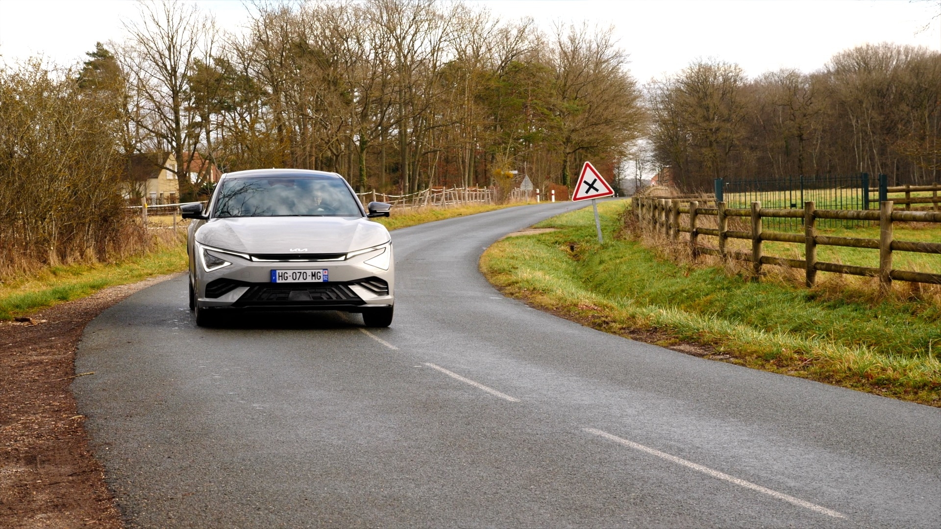 Cependant, il ne faut pas croire que le confort reste en retrait, bien au contraire. Le contrôle du roulis, l’excellente insonorisation des bruits d’air et des bruits de roulement dans une moindre mesure font de cet EV6 un excellent compagnon de voyage. On aurait juste aimé des amortisseurs arrière un peu moins durs, en particulier lors du passage des saignées.