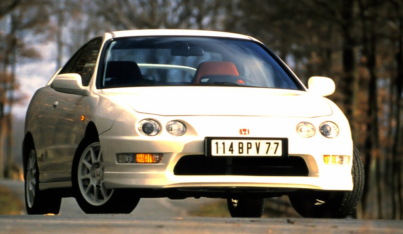 Si la Civic Type R est apparue est en 1997 sur la génération EK9, l’Europe a dû attendre 1998 pour découvrir ce badge. Et encore était-ce non pas sur une Civic mais le coupé Integra. Y a-t-elle perdu au change ? Pas vraiment. En effet, son bloc 1,8 l bénéficie pratiquement d’un traitement course : bielles allégées, vilebrequin tournant sur 8 paliers, conduits d’admission polis, en plus de la distribution V-Tec. Le tout autorise une cavalerie de 190 ch, soit un ratio de 105 ch/l quasi-record pour un moteur atmosphérique de série.